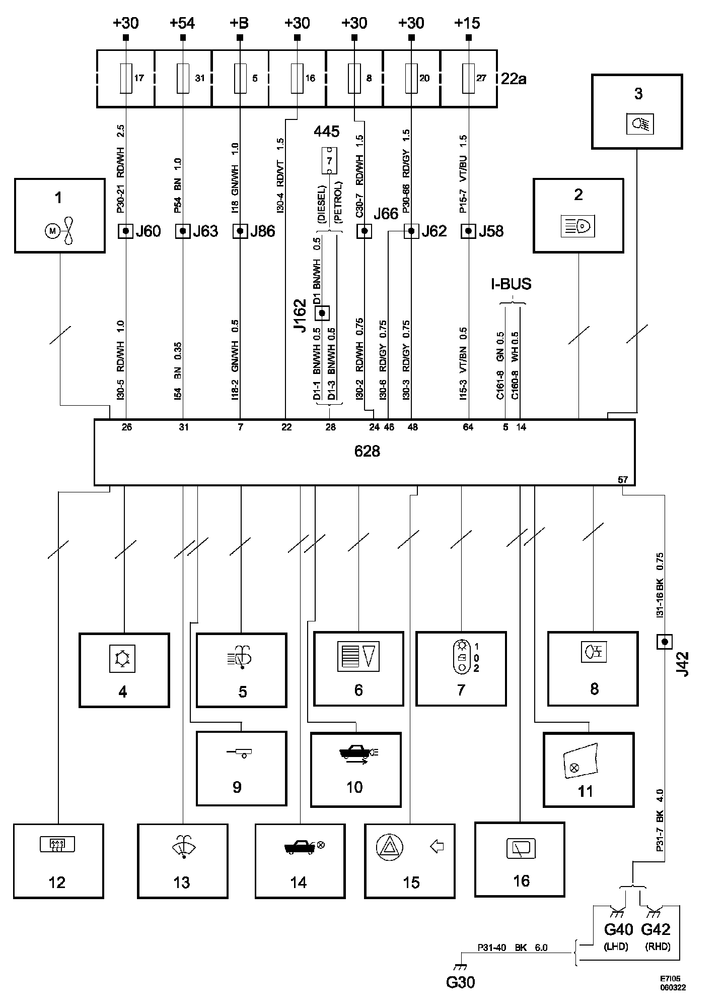 Power Supply Diagrams: The diagrams for the power supplies that may be feeding this system (+30, +15, +54, +X, and +B) can be found at Power and Ground Distribution diagrams. Electrical Diagrams