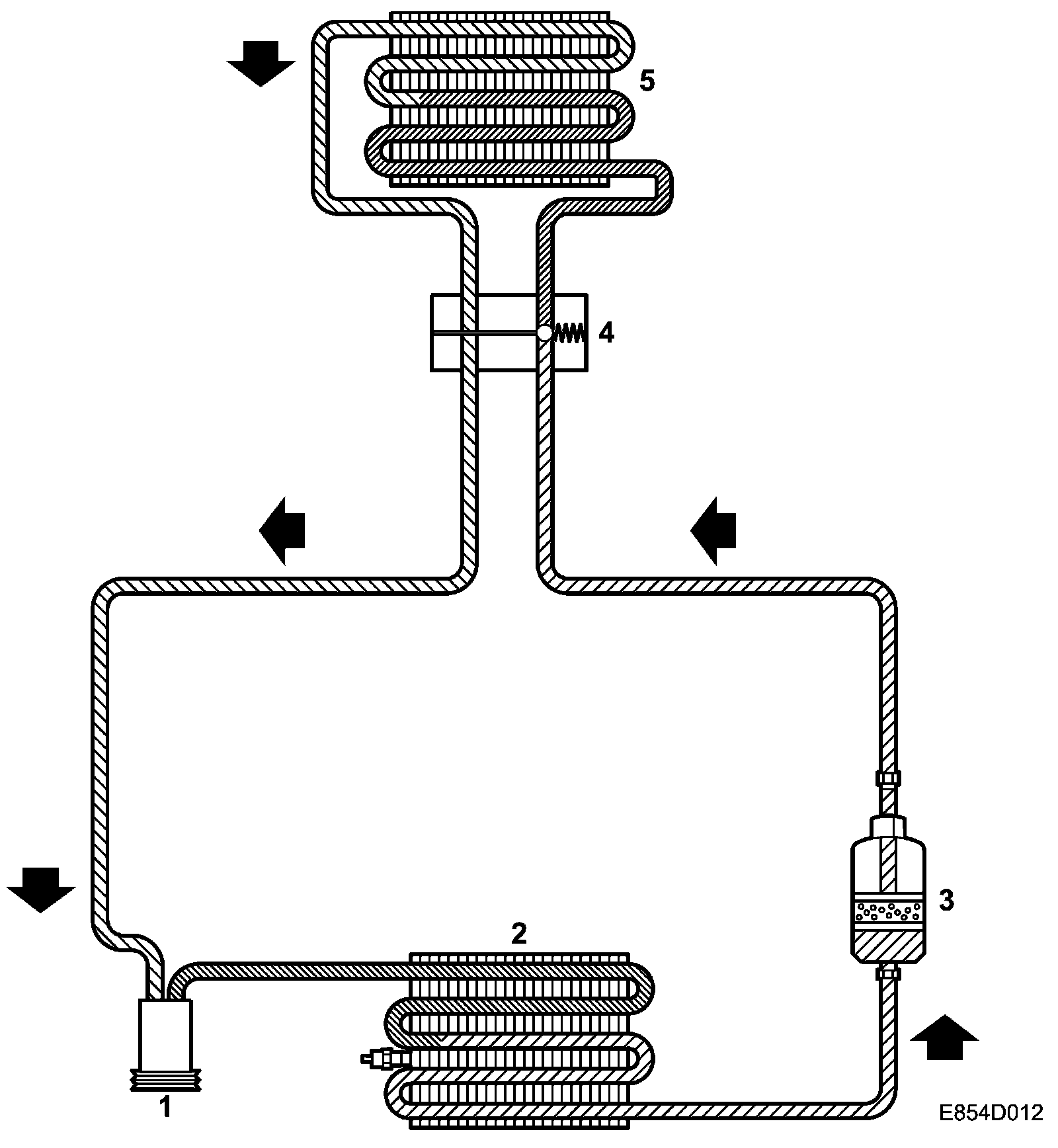 When the refrigerant expands, it turns into a gas (evaporates). This evaporation requires heat. This heat is taken from the air surrounding the evaporator. The cold air is then fed into the cabin. The refrigerant is led in gaseous form on to the compressor.
