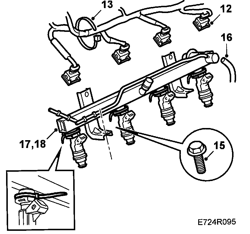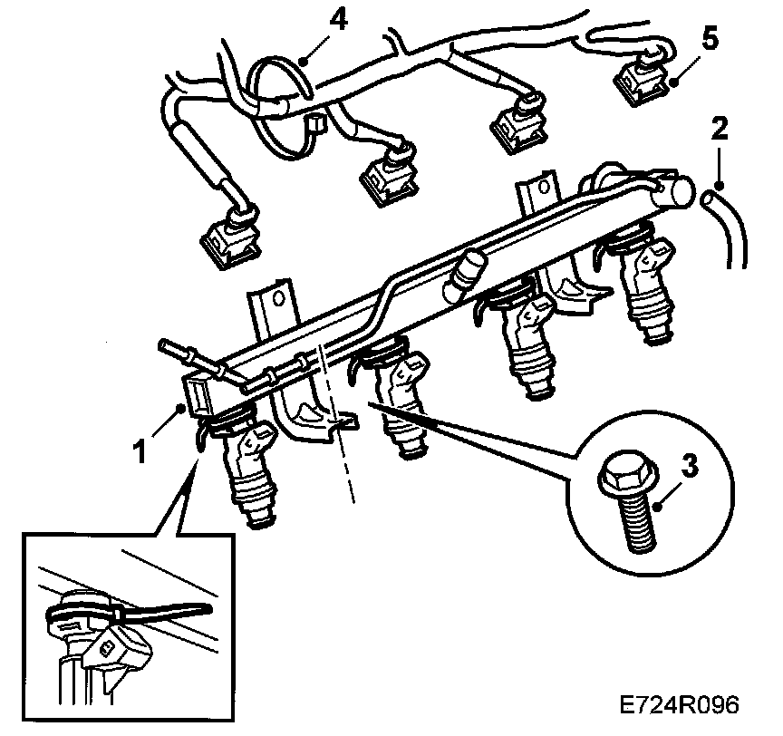 IMPORTANT: Secure each injector clip with a narrow cable tie. Make sure that it is correctly fitted and then tighten it. If this is not done, the injectors could come loose from the fuel rail during the flow test.