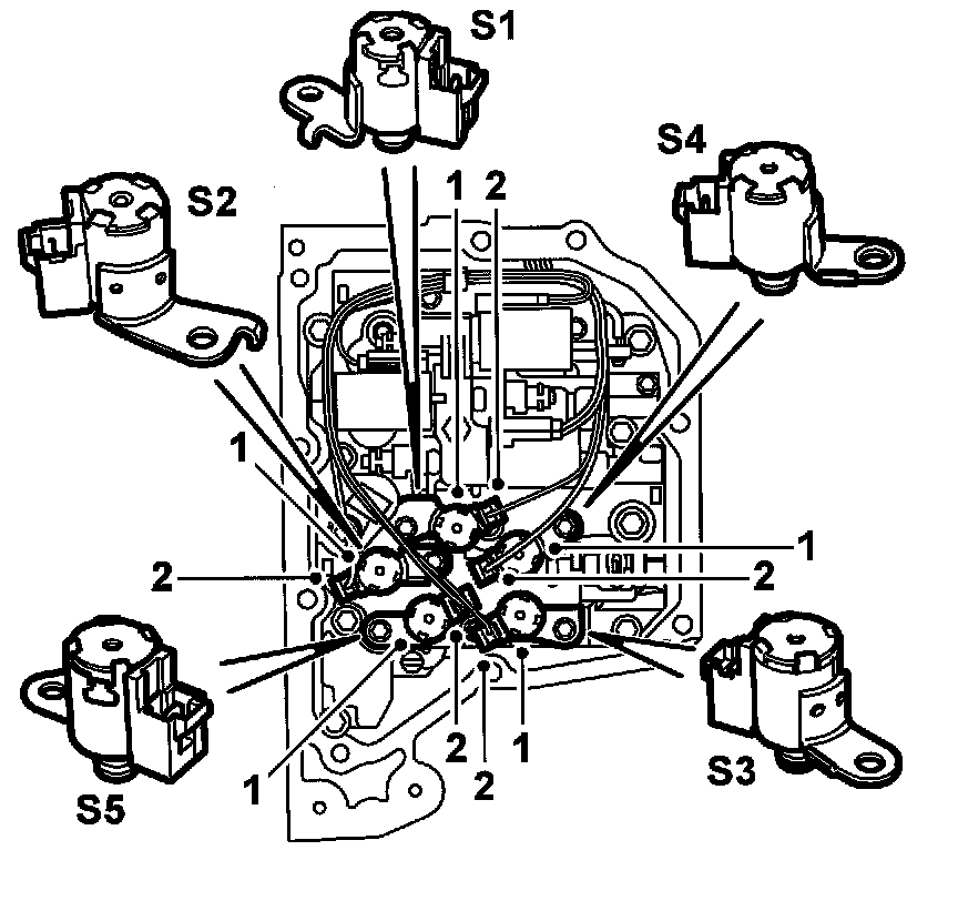 IMPORTANT: Solenoids SLT, SLS and SLU that control the system pressure and Lock-up must not be dismantled!
