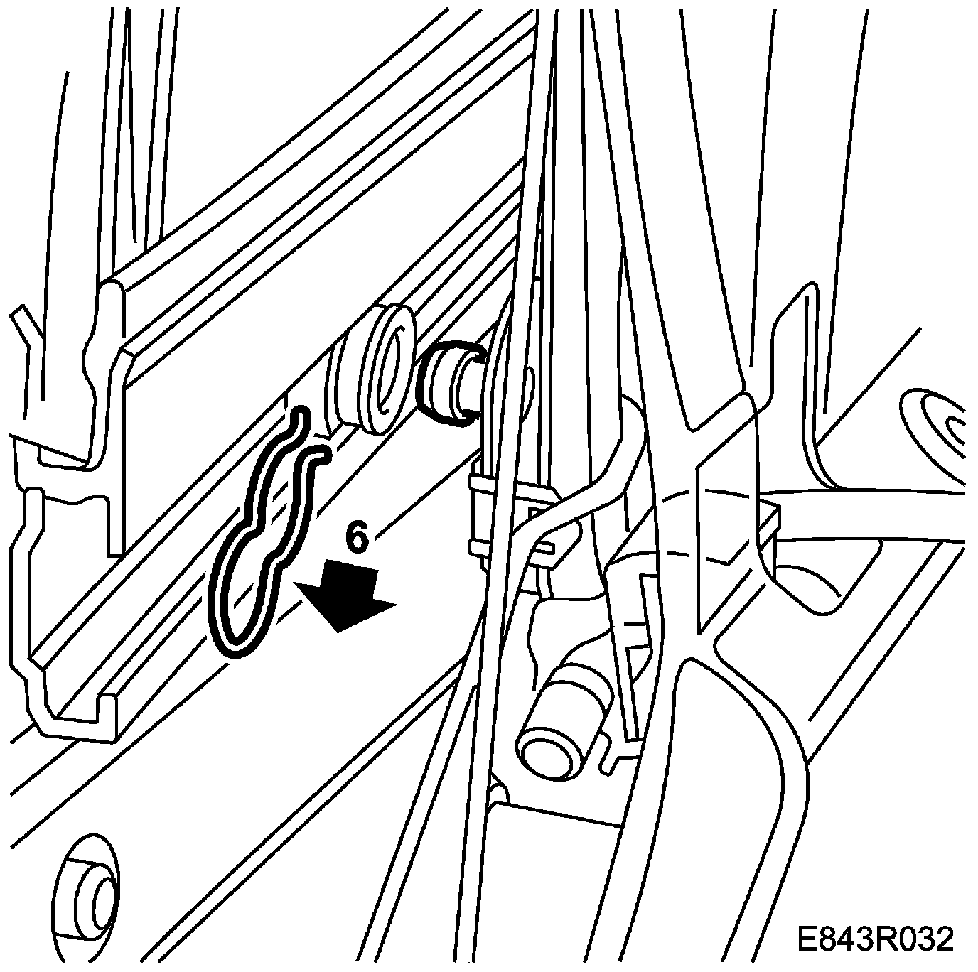 4. Lower the window so that the window mounting is visible through the hole in the door. The clip securing the ball in the window lift to the window guide rail is now accessible.
