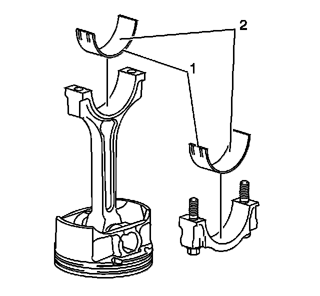 6. Install the connecting rod bearings into the connecting rods and caps (1).