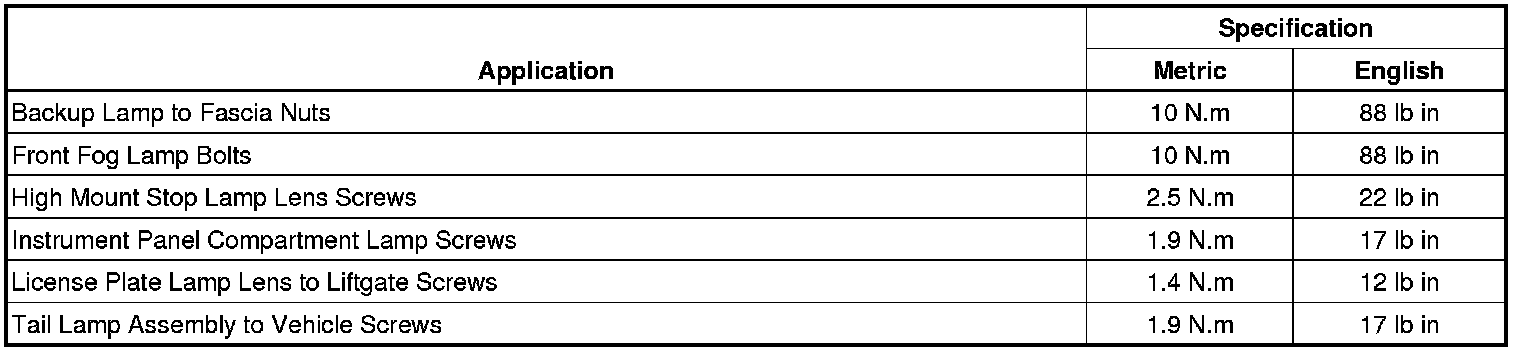 Fastener Tightening Specifications