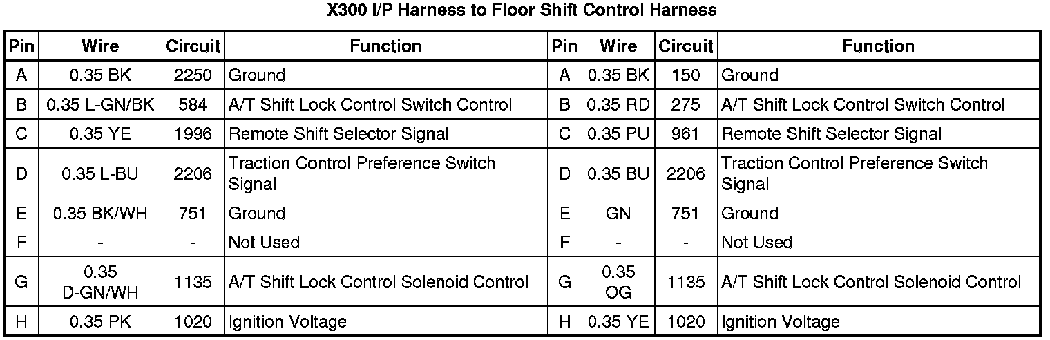 X300 I/P Harness to Floor Shift Control Harness
