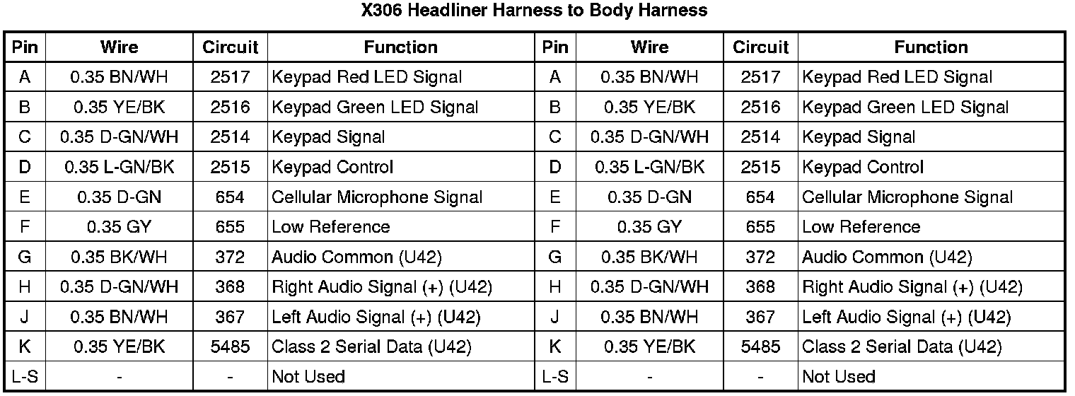 X306 Headliner Harness to Body Harness