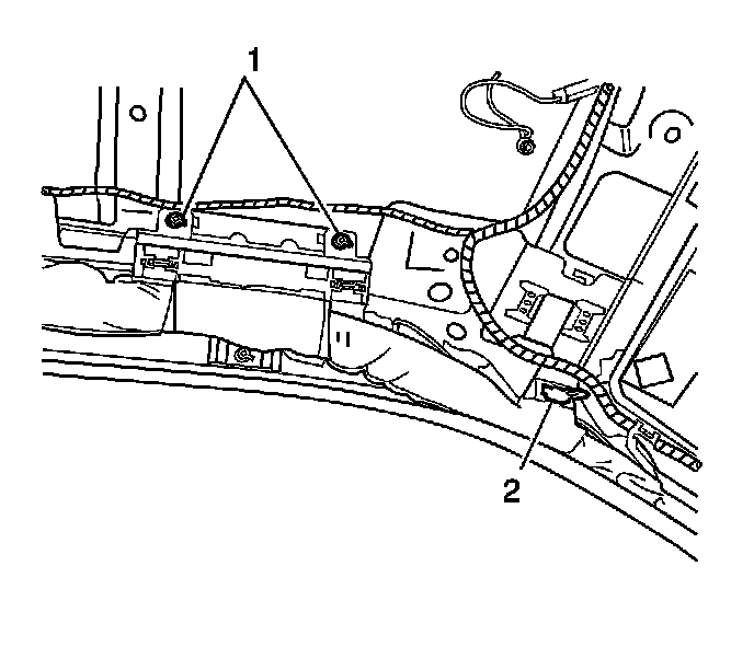 9. Remove the forward curtain clip (2).