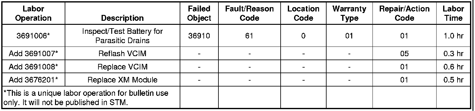 In Step 10.2, for HUMMER H3 models , if the parasitic draw drops to 15 mA or less, repeat the test with the fuse re-installed and the XM Module disconnected. If the parasitic draw is still eliminated by OnStar fuse removal, replace the VCIM. if no parasitic draw is detected, replace the XM module per: instructions in step 10.3.
