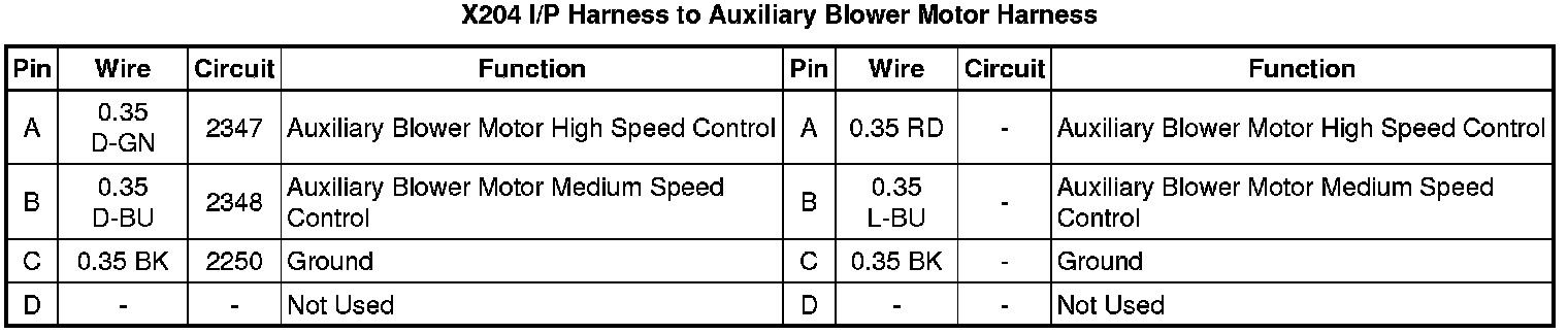 X204 I/P Harness to Auxiliary Blower Motor Harness