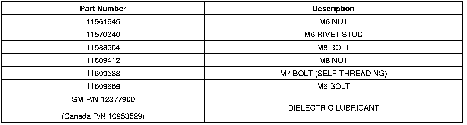 Use only the GM-approved replacement fasteners with conductive finish for electrical ground repair.