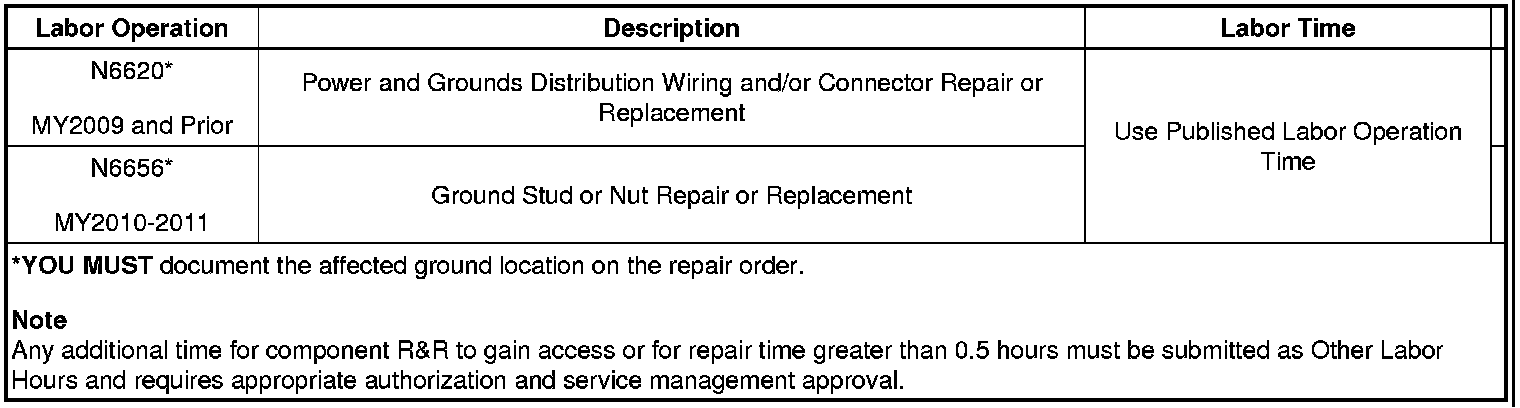 1. If the M6 weld nut at the electrical ground location is damaged or stripped, a M7 conductive self-threading bolt may be used to secure the ground wire terminal.