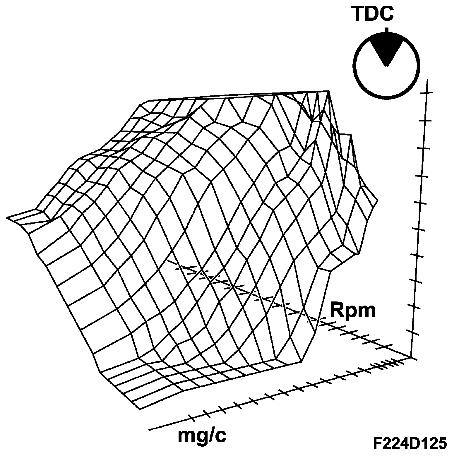 The ignition timing is regulated depending on the engine load and speed (air mass per combustion mg/c). The objective of this ignition regulation is to obtain the correct combustion pressure buildup.