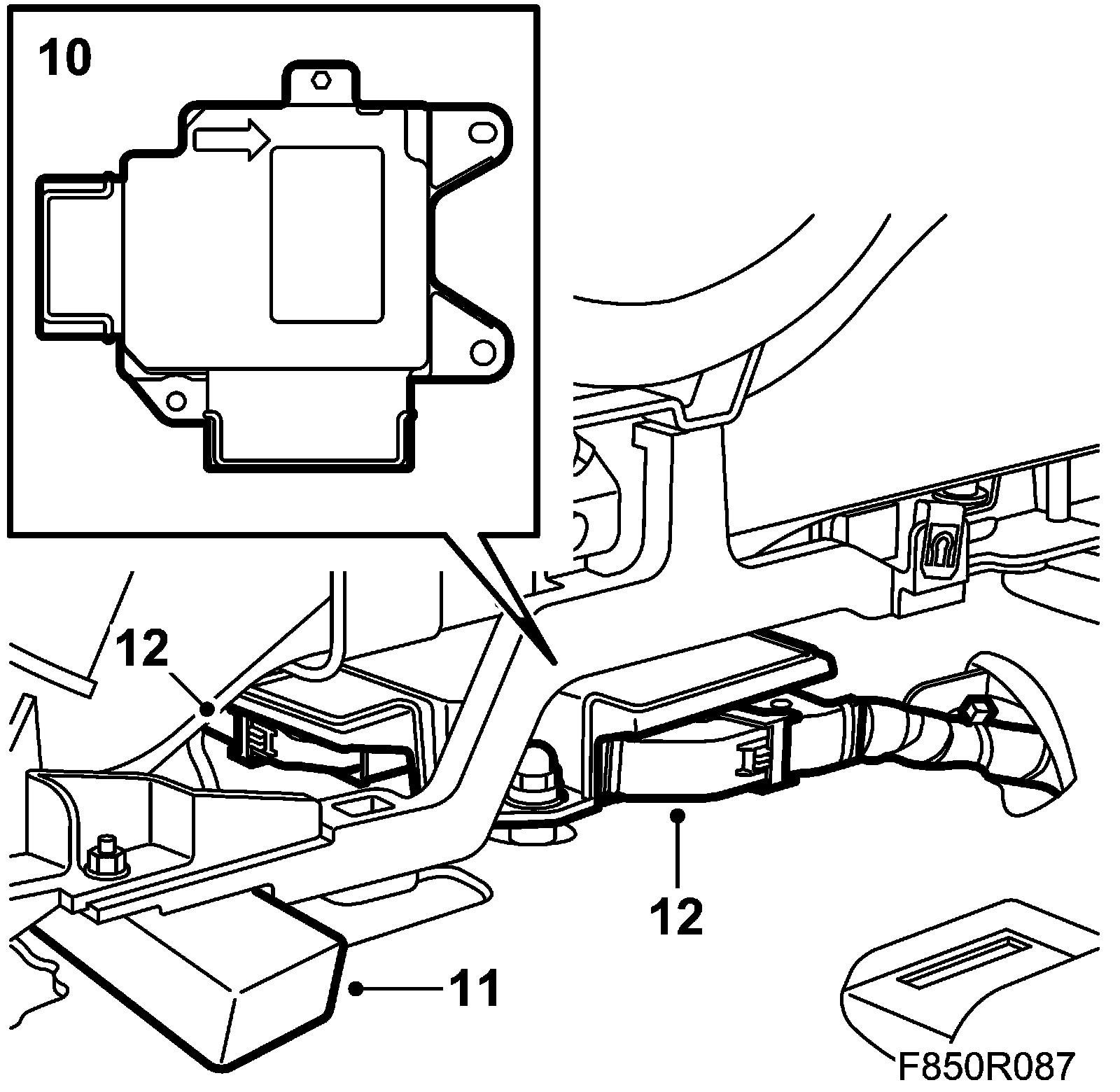 13. Lift up and carefully move the Airbag Control Module out between the aluminium frame and the floor.