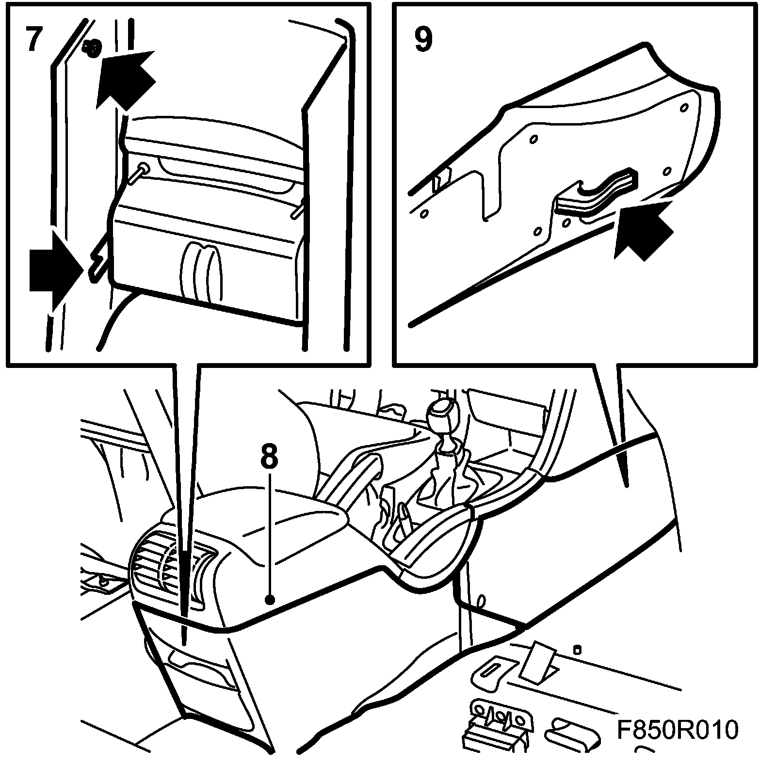 8. Fit the centre console's rear side panel.