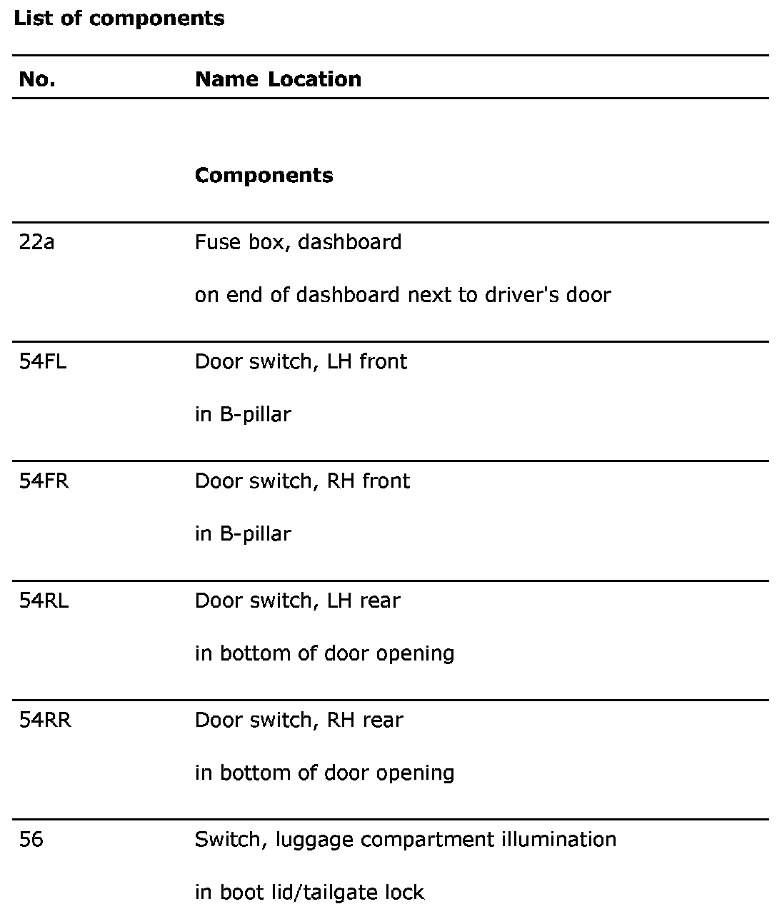 List of components