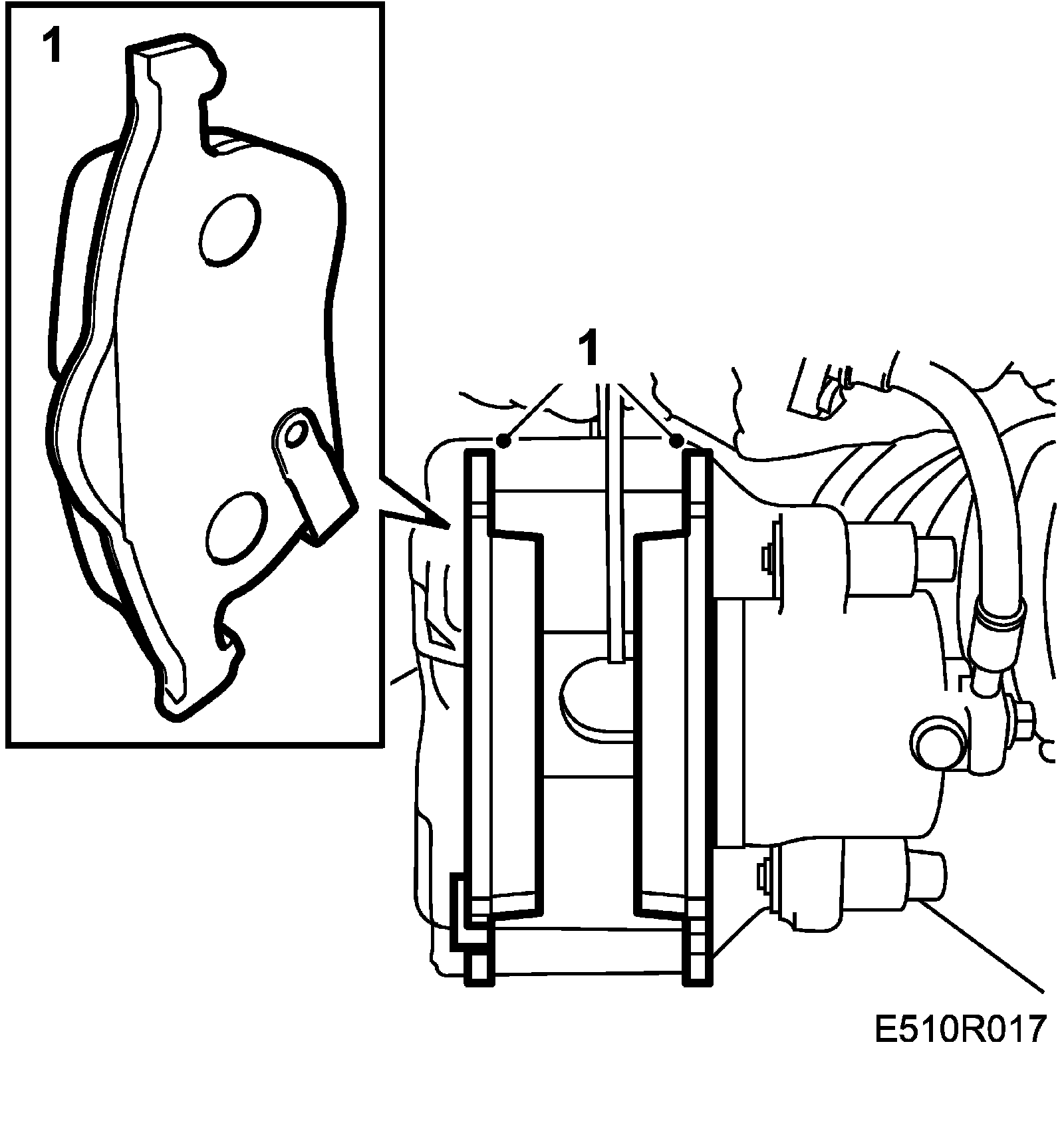 1. Fit the new brake pads in the brake caliper.