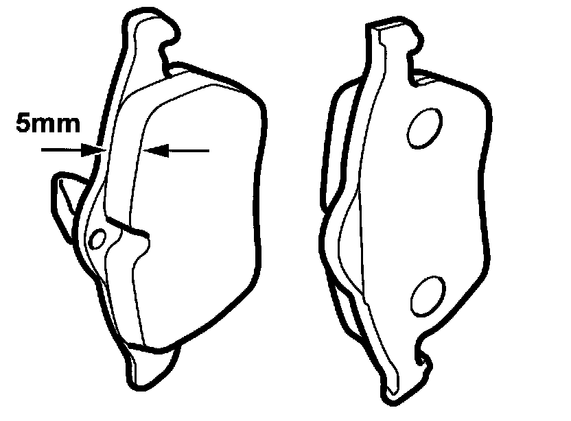 3. It is recommended to change the brake linings when they are 5 mm (0,16 inch) thick or less.