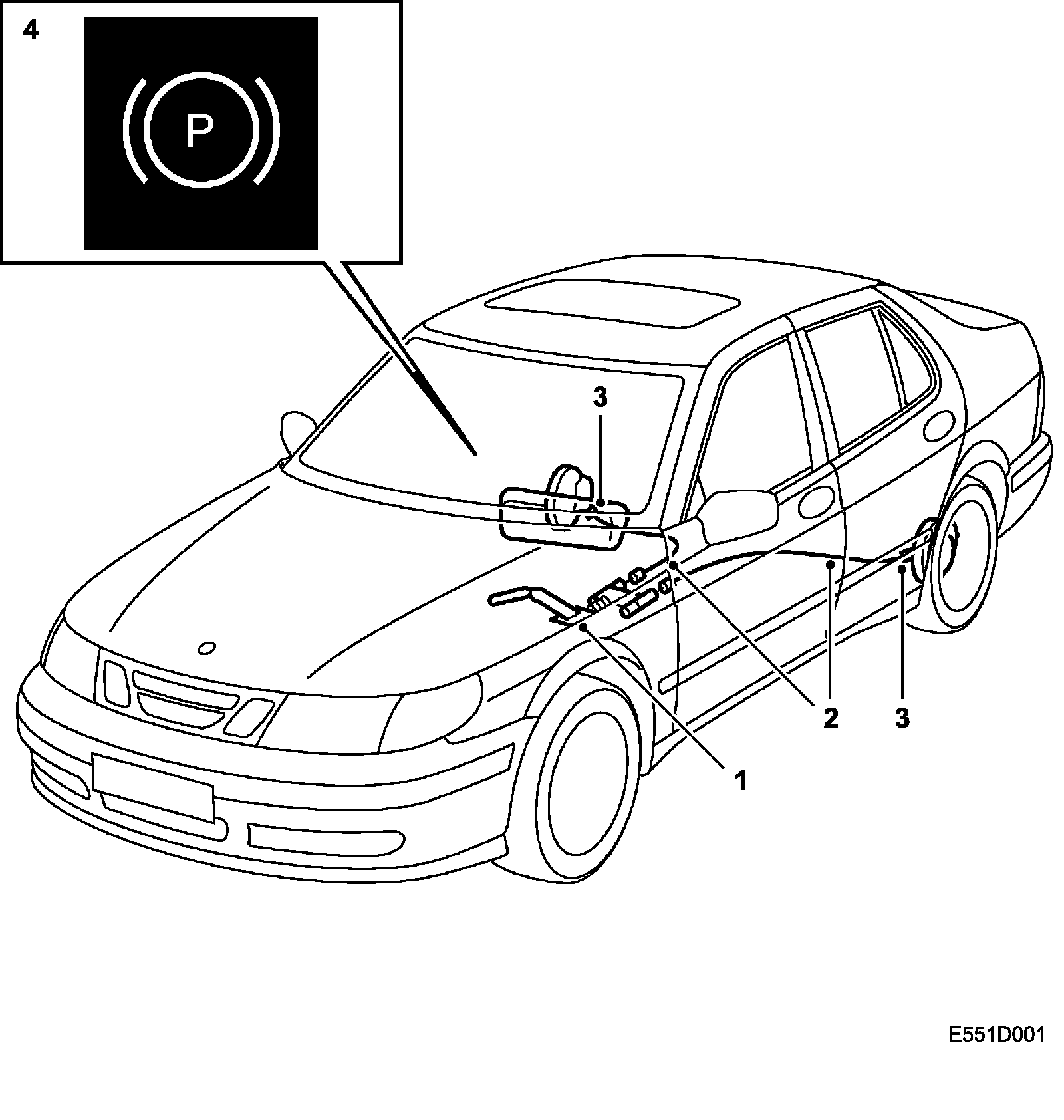 When the hand brake is applied a warning lamp (4) lights up in the main instrument display panel.