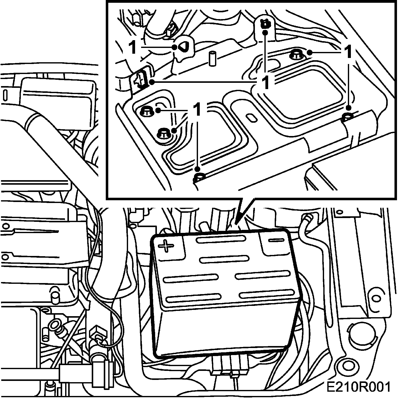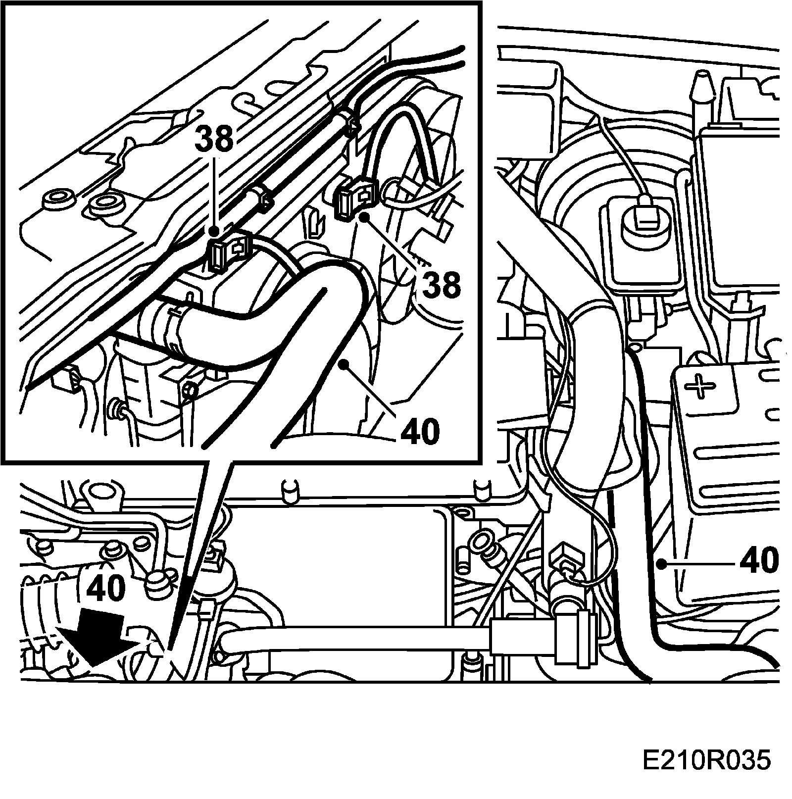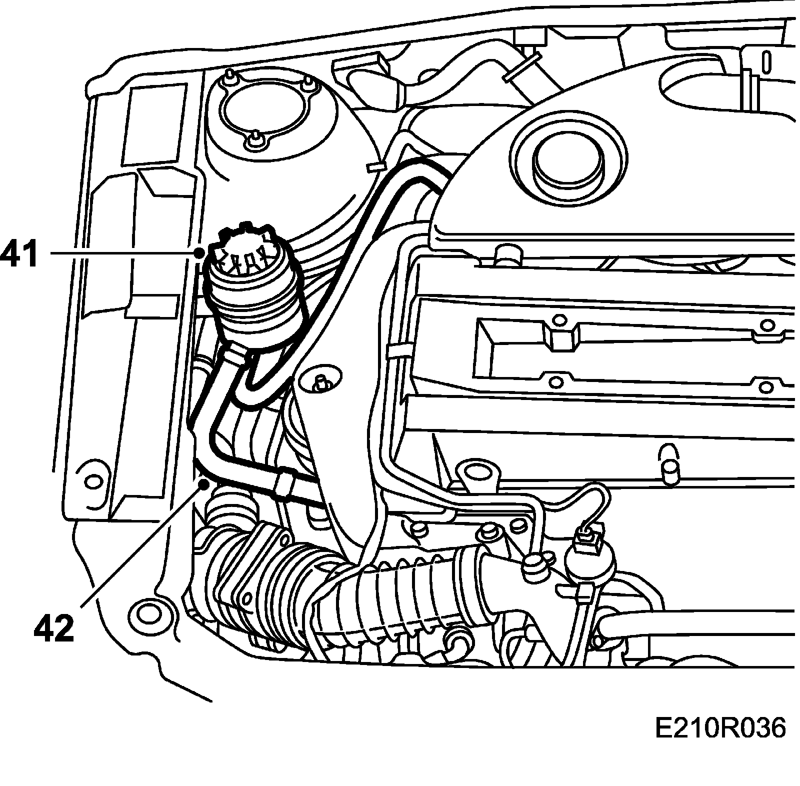 50. Fit the battery tray, the battery, the cover over the intake manifold and the battery cover. Remove the wing covers. Fit the vacuum hose to the heat exchanger shut-off valve (cars with AC).