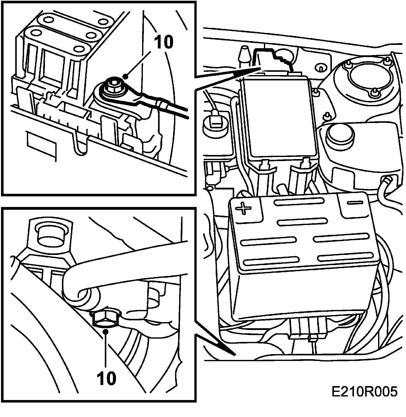 10. Disconnect the positive cable at the distribution terminal and the negative cable at the gearbox.