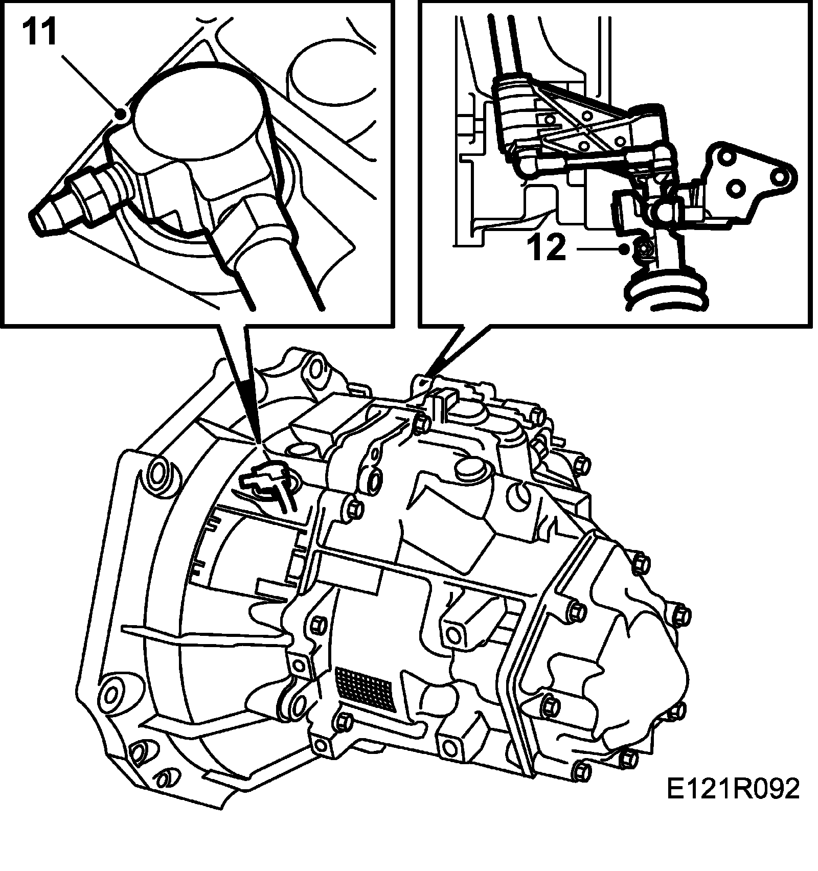 12. (man) Engage 4th gear, remove the selector rod and engage 3rd gear.