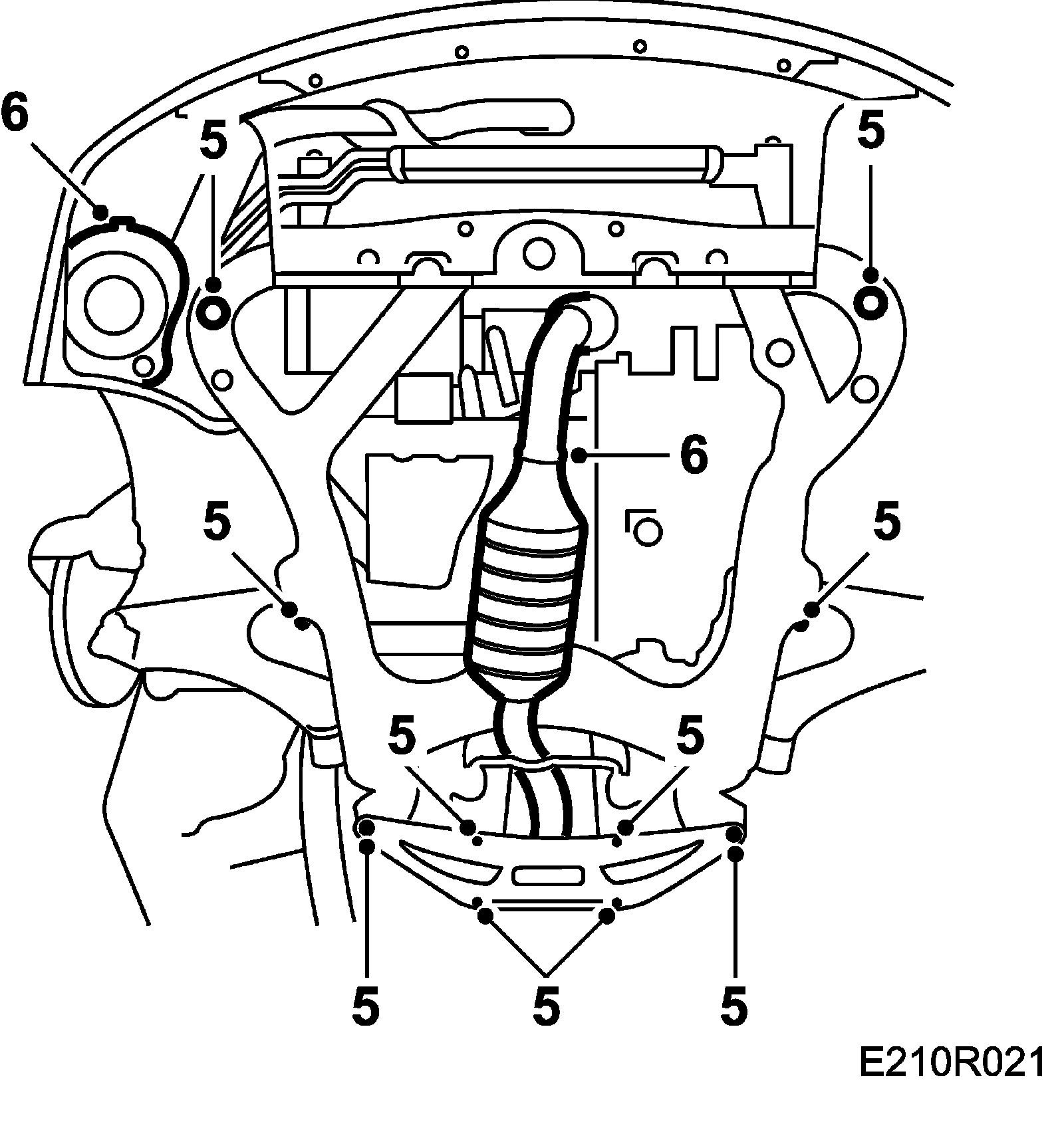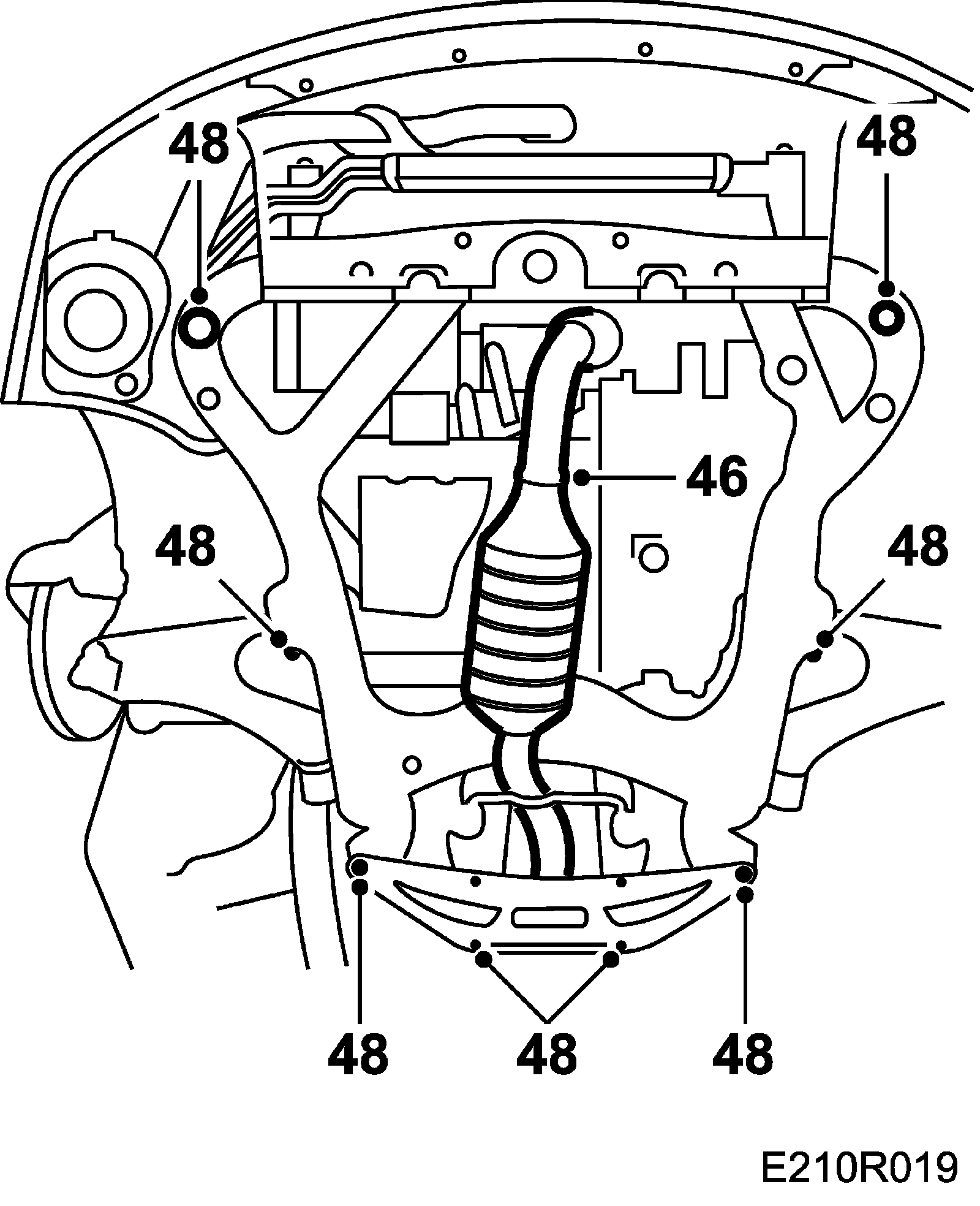 48. Remove the 10 subframe and supporting plate retaining bolts.