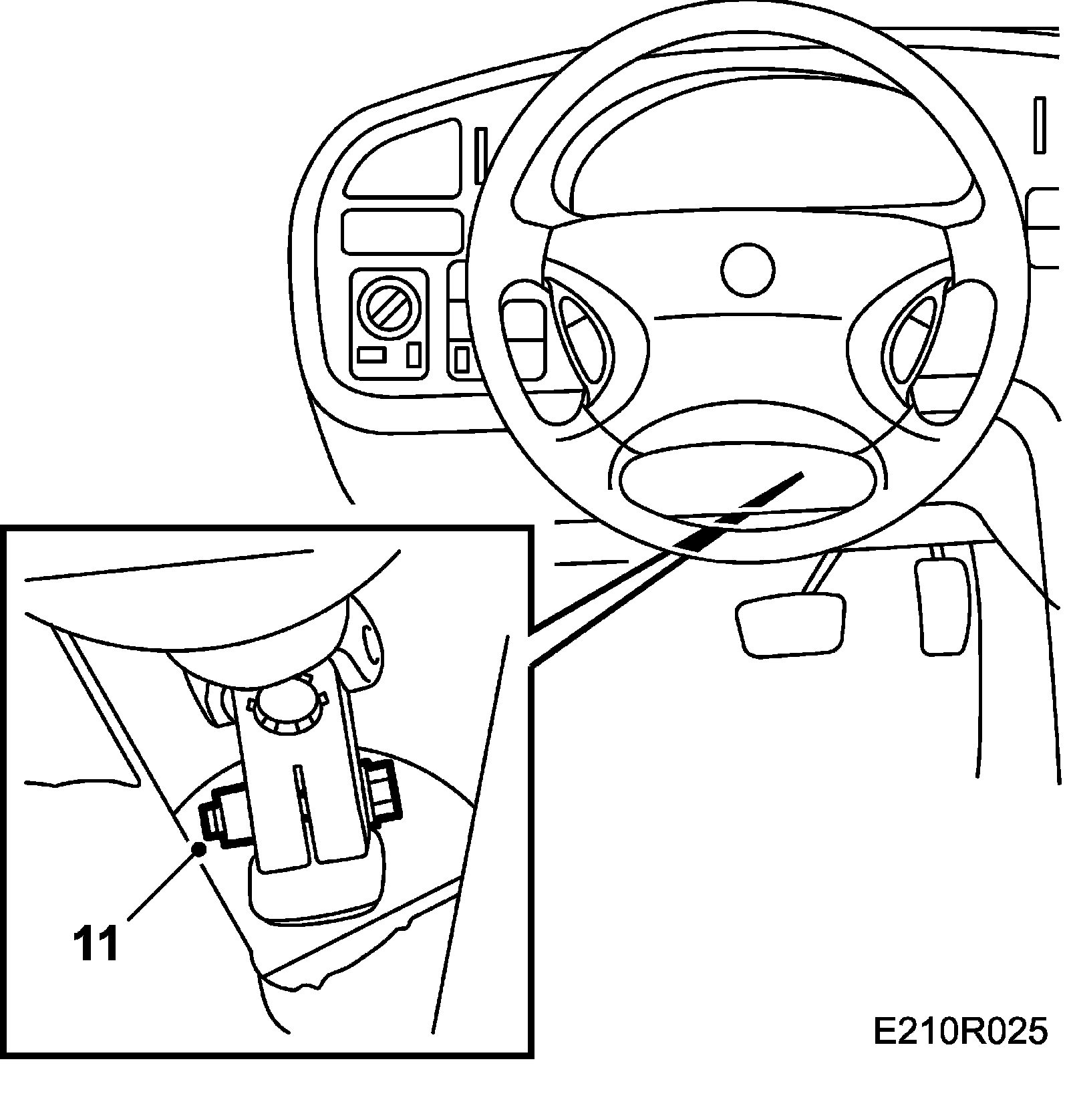 5. Turn the front wheels to the straight ahead position and secure the steering wheel in this position. Undo the steering column locking bolt and move the steering column upwards.