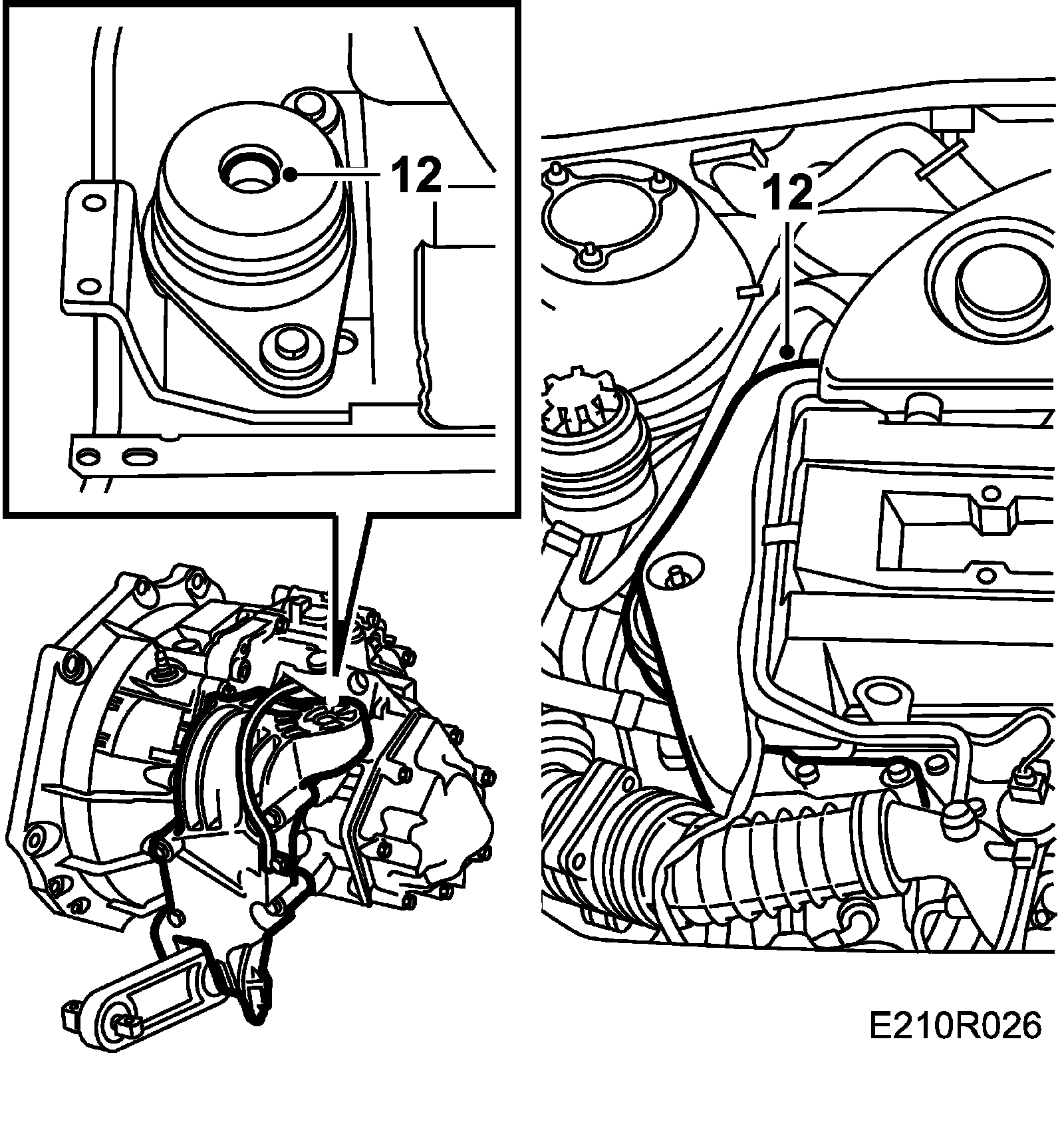 12. Fit the left-hand engine mounting but without tightening it. Fit the right-hand engine mounting with yoke but do not tighten.