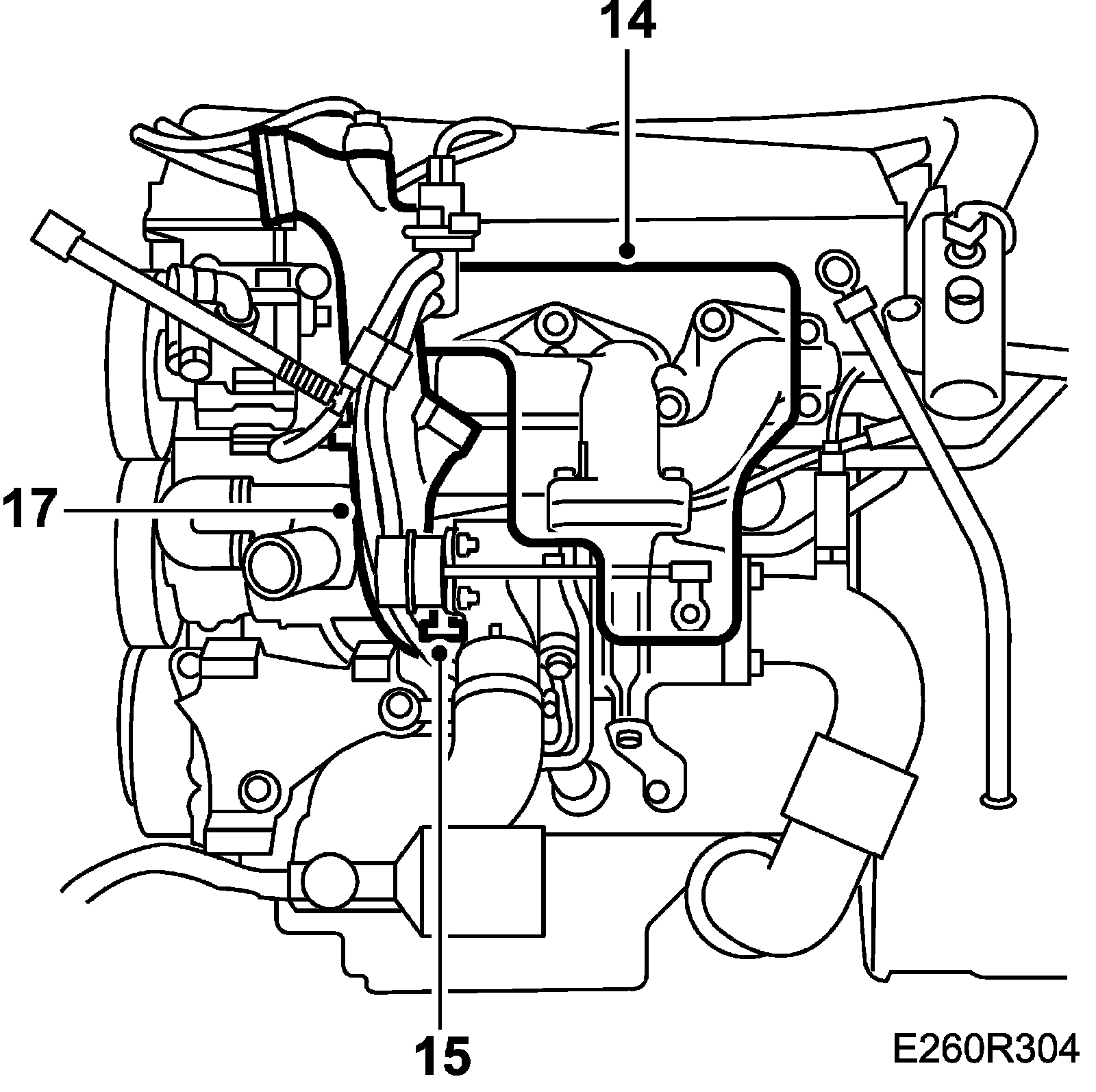 15. Fit the crankcase breather pipe to the turbo intake pipe.