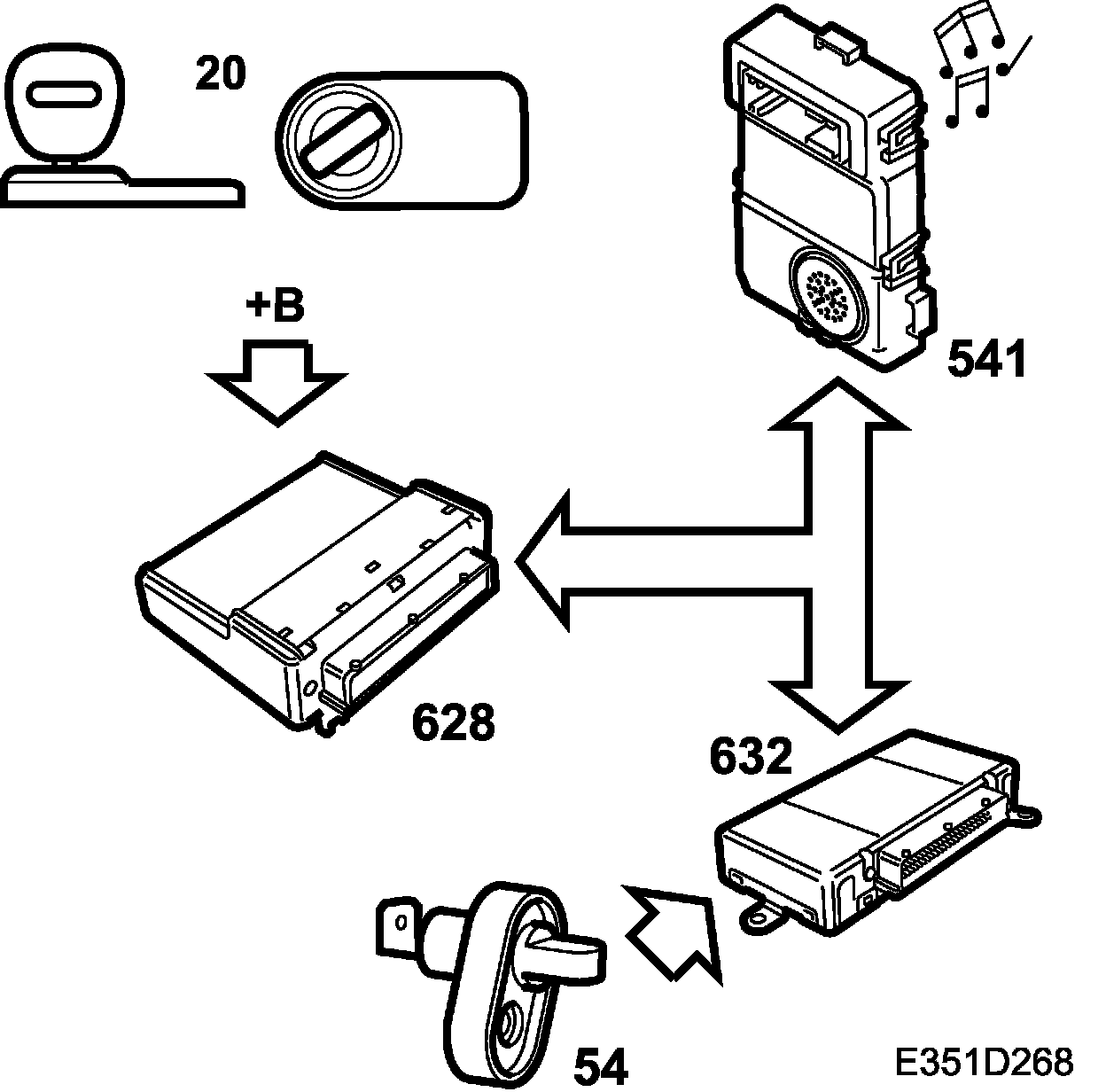If the driver's door is opened, DICE gets a message via the bus from TWICE (OPEN/CLOSED). DICE sends information on the bus to SID (Audible signal) which generates a PING sound.