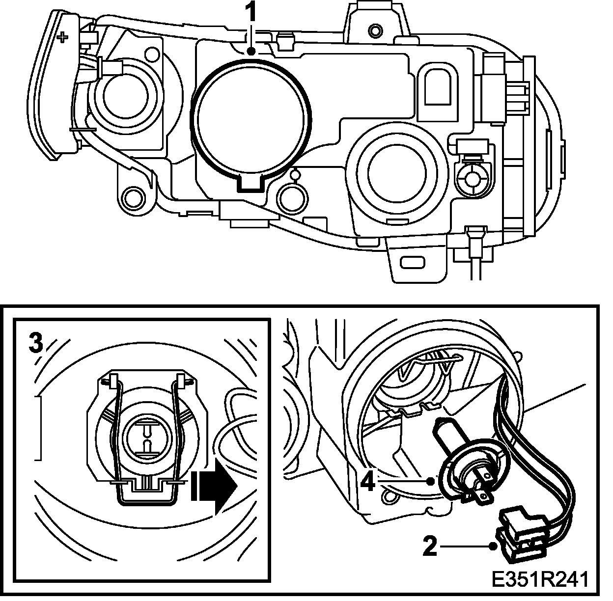 In some versions the dipped beam bulb is fitted in the same way as the main beam lamp, without locking spring, see Main beam lamp, halogen, replacement.
