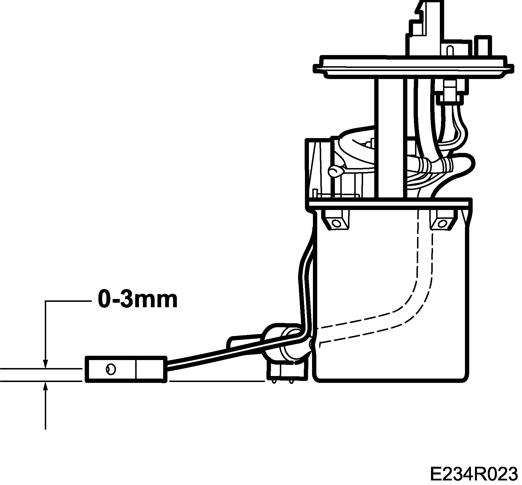 With the pump placed on a level surface, the distance between the surface and the bottom of the float should be 0-3 mm.