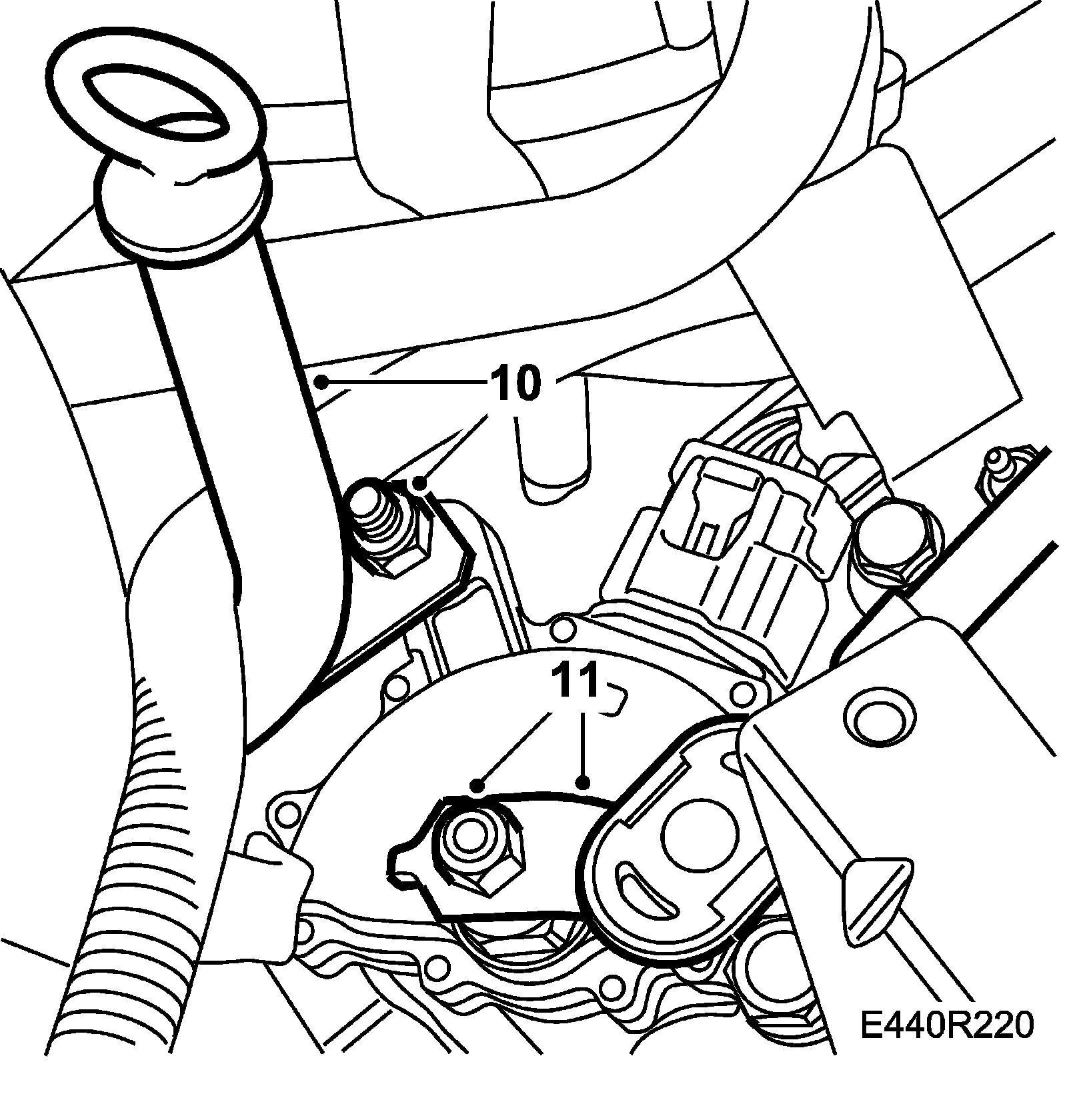 10. Clean and lubricate the fluid filler pipe's O-ring with petroleum jelly (Vaseline) and fit the fluid filler pipe.