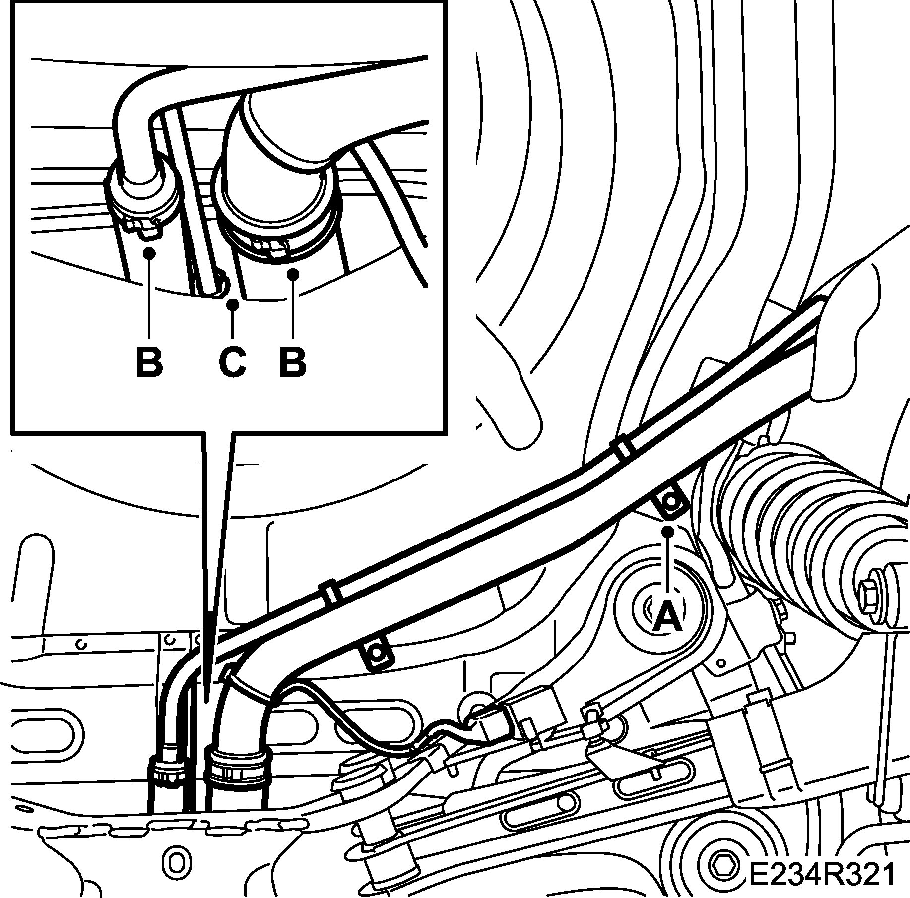 - Attach the filler pipe to the tank and tighten the hose clips (B). Fit the ventilation pipe (C).