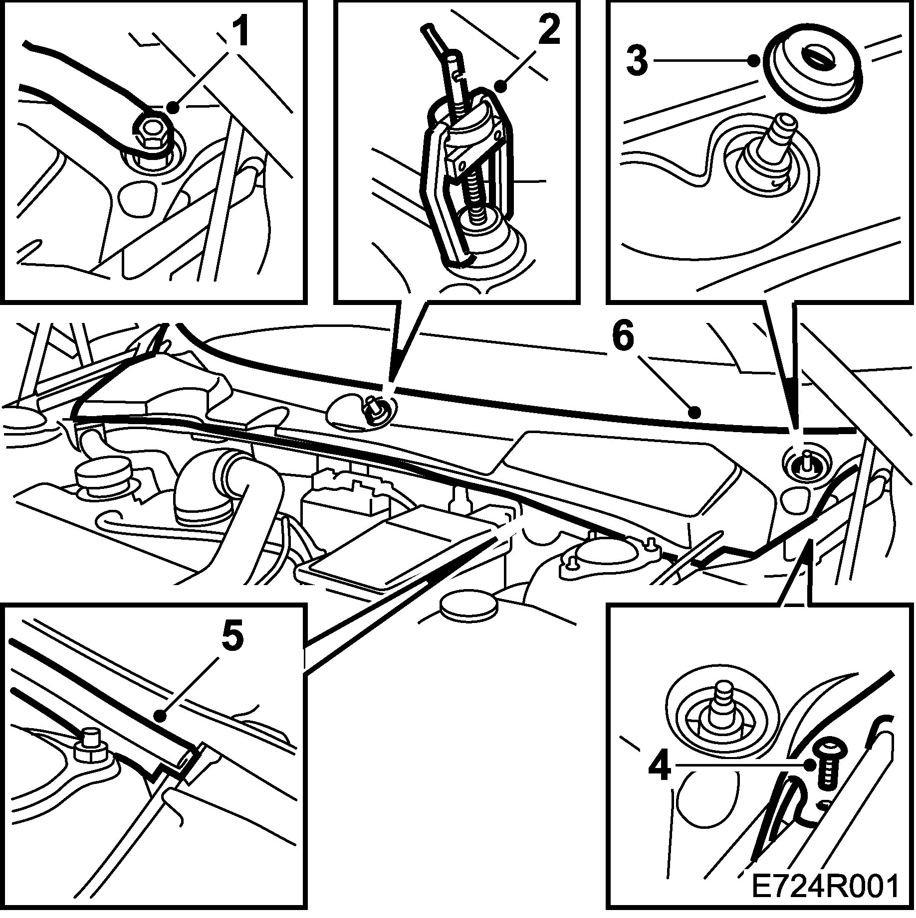 2. Loosen the wiper arms with a puller, special tool (part no. 85 80 144). Remove the nuts and wiper arms.