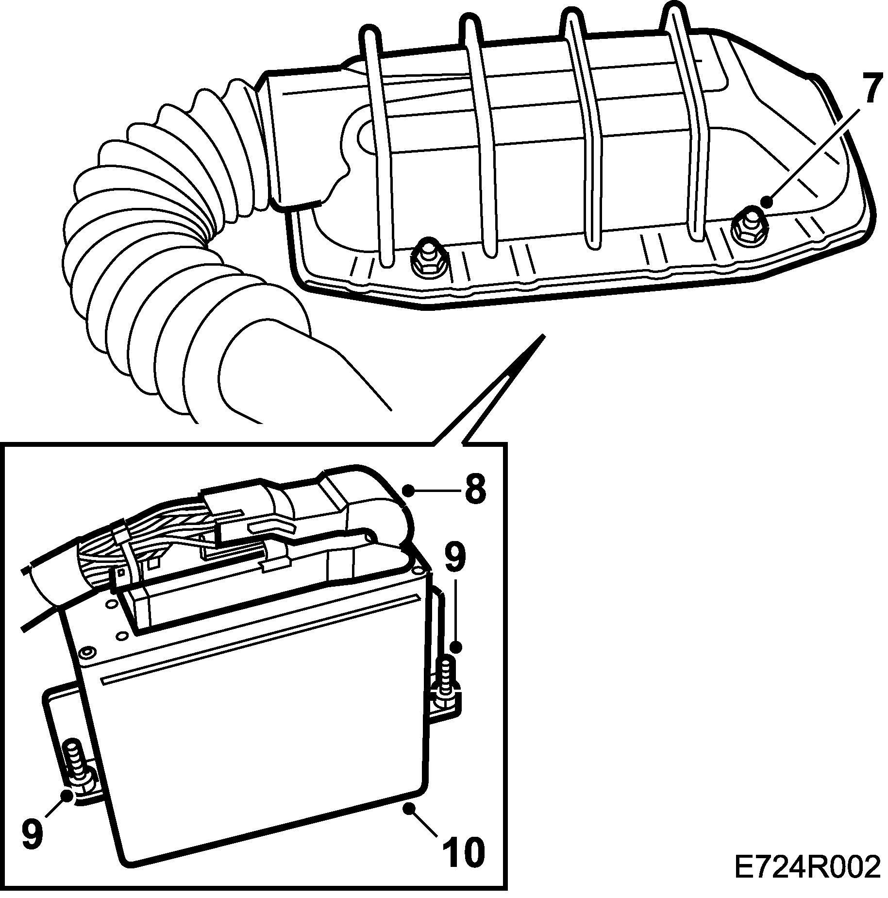 8. Tilt up the cover and unplug the control module multiconnector by releasing the catch on the right.