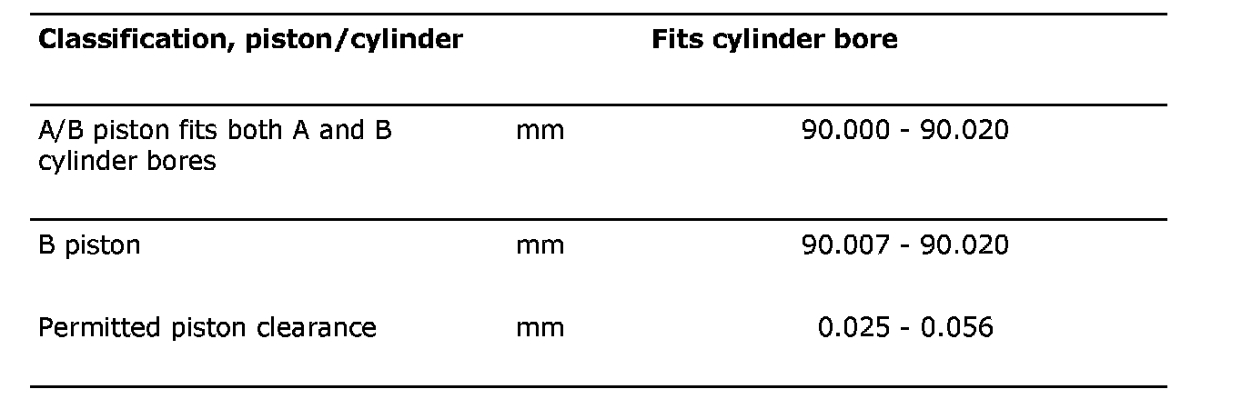 Classification of pistons and cylinder bores
