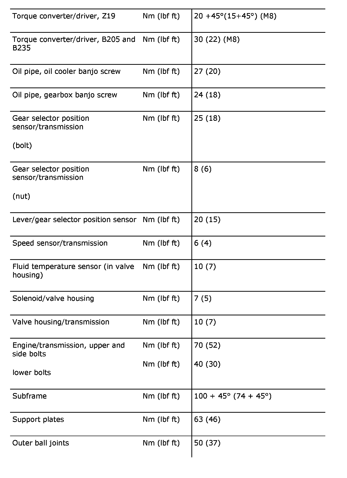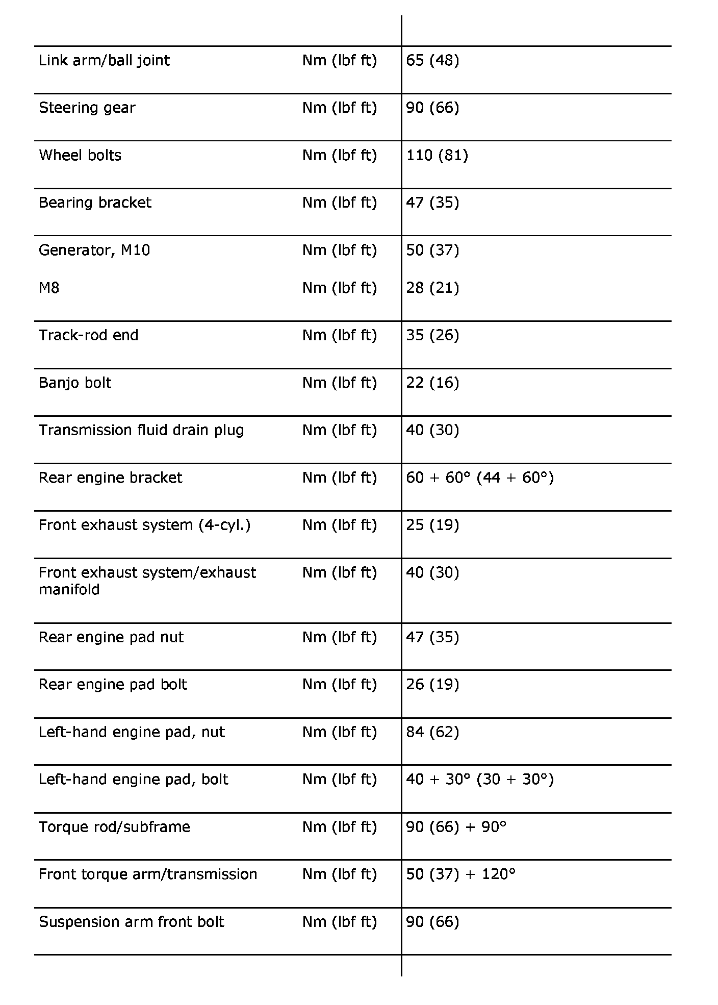 Tightening torques