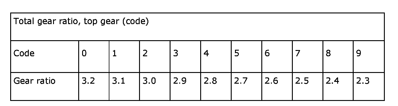 The three character groups are separated by spaces and contain different information about the gearbox as specified below.