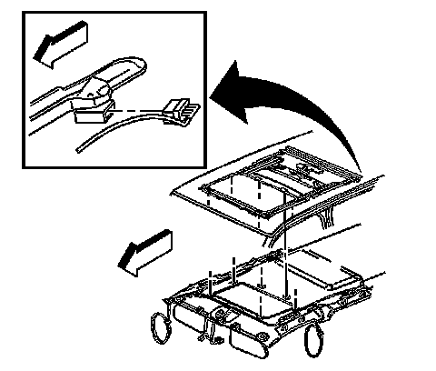 2. If the vehicle is equipped with a sunroof, partially raise the headliner and connect the sunroof assembly electrical connector.