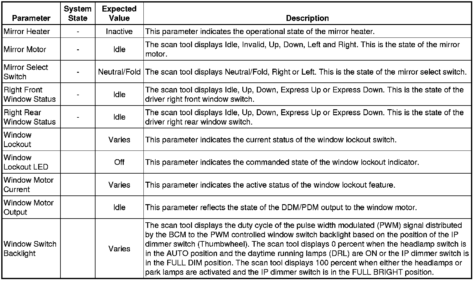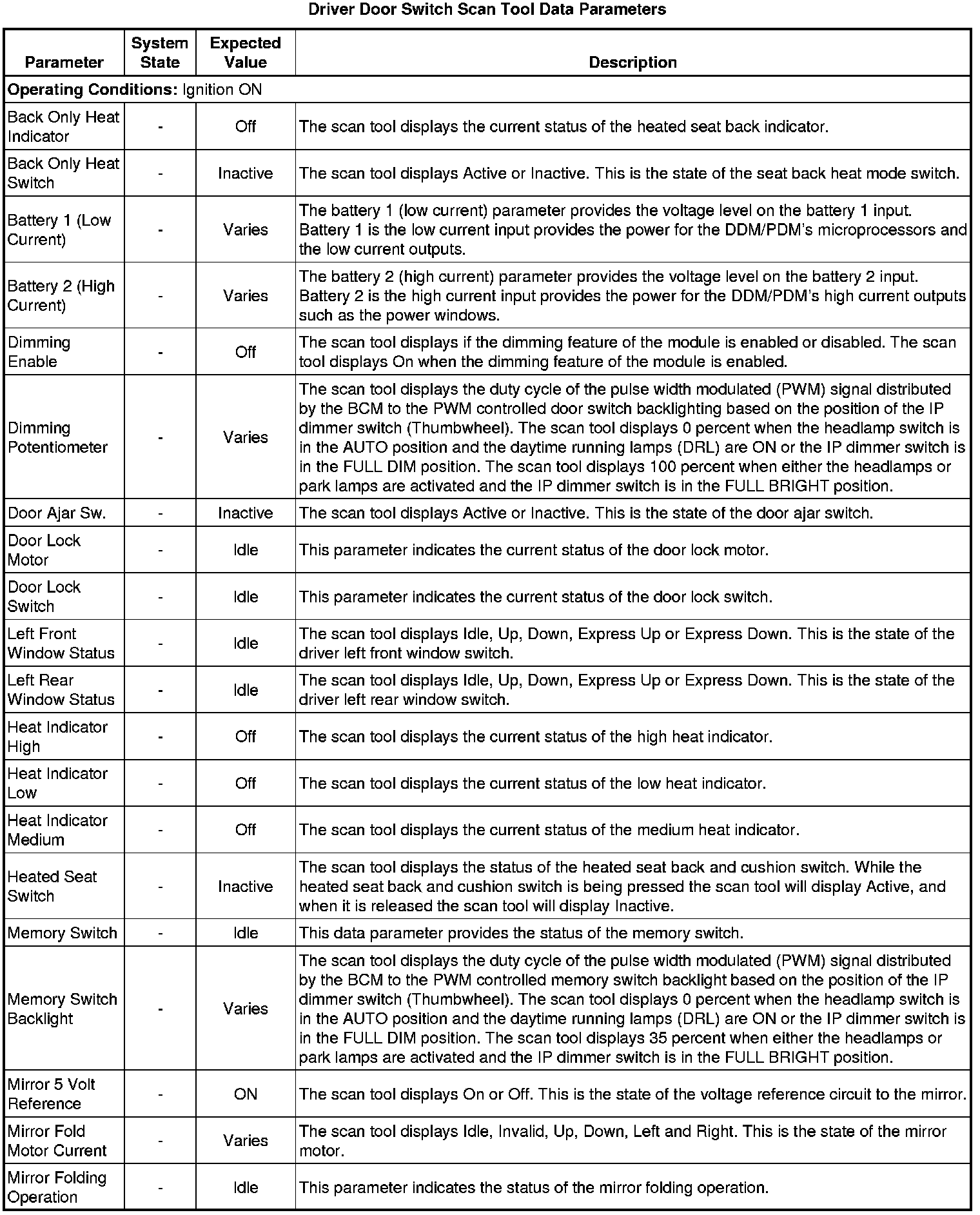 Door Lock Control Module Scan Tool Information (Driver Door Switch)