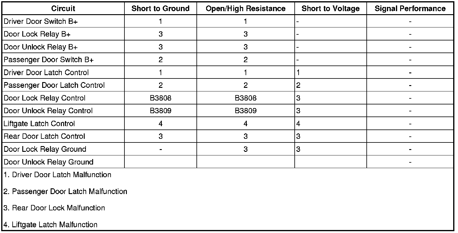 11. If the circuits test normal, test or replace the passenger door latch.