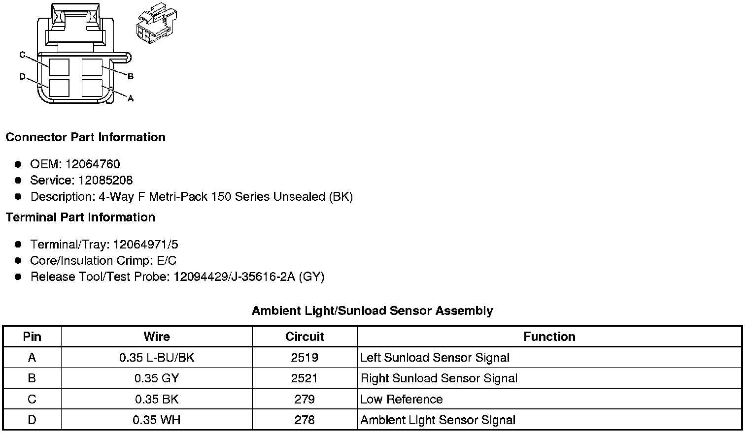 Ambient Light/Sunload Sensor Assembly