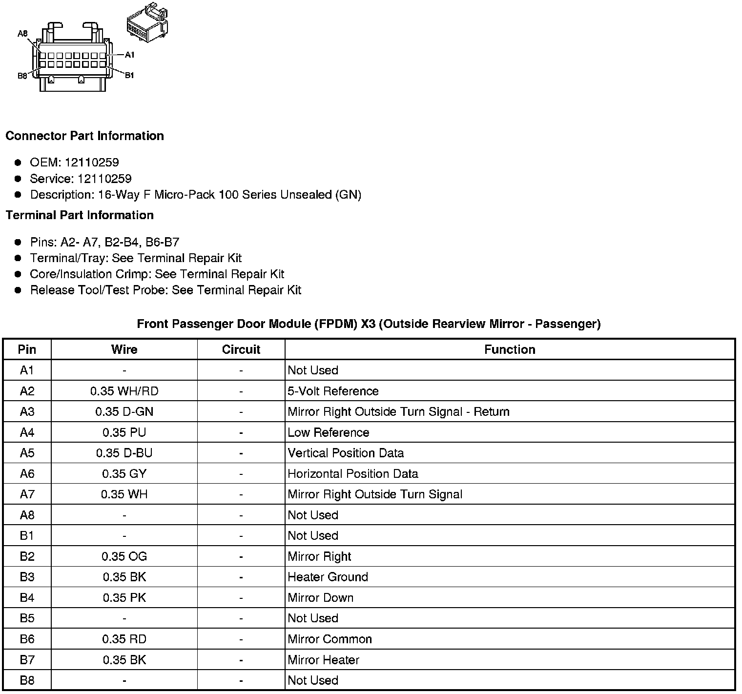 Front Passenger Door Module (FPDM) X3 (Outside Rearview Mirror - Passenger)
