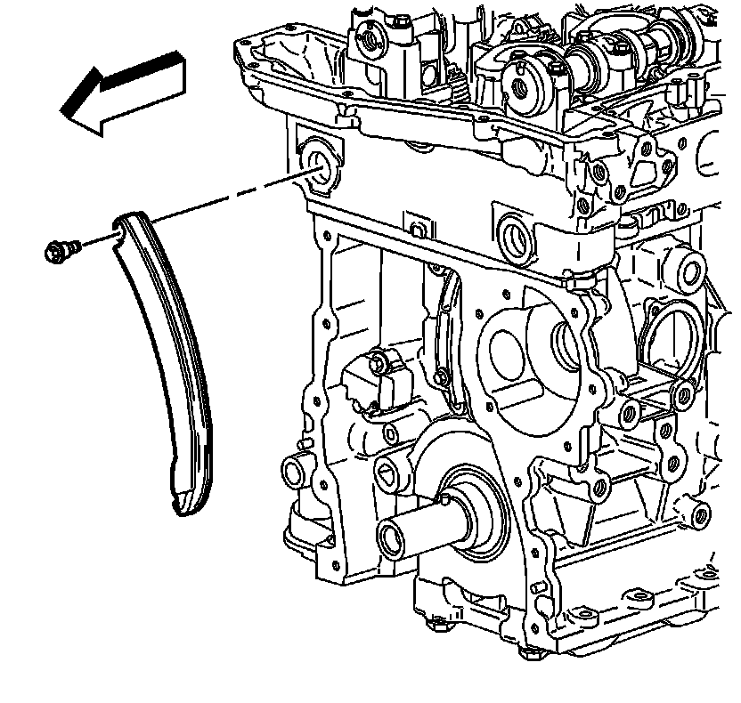 15. Remove the timing chain tensioner guide.