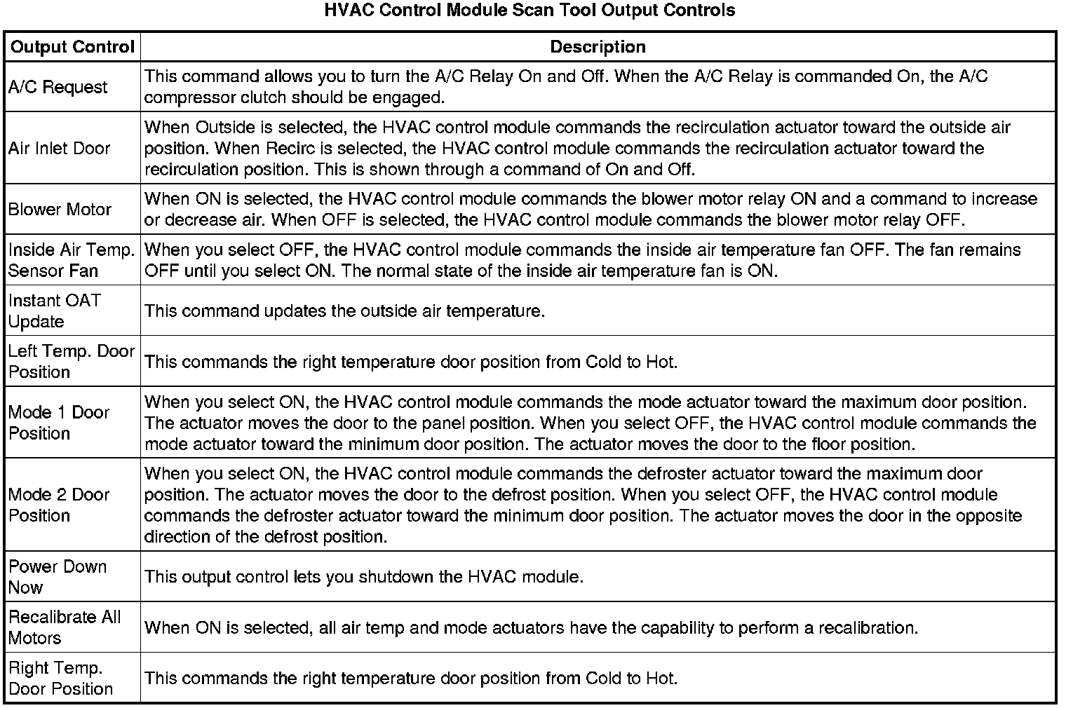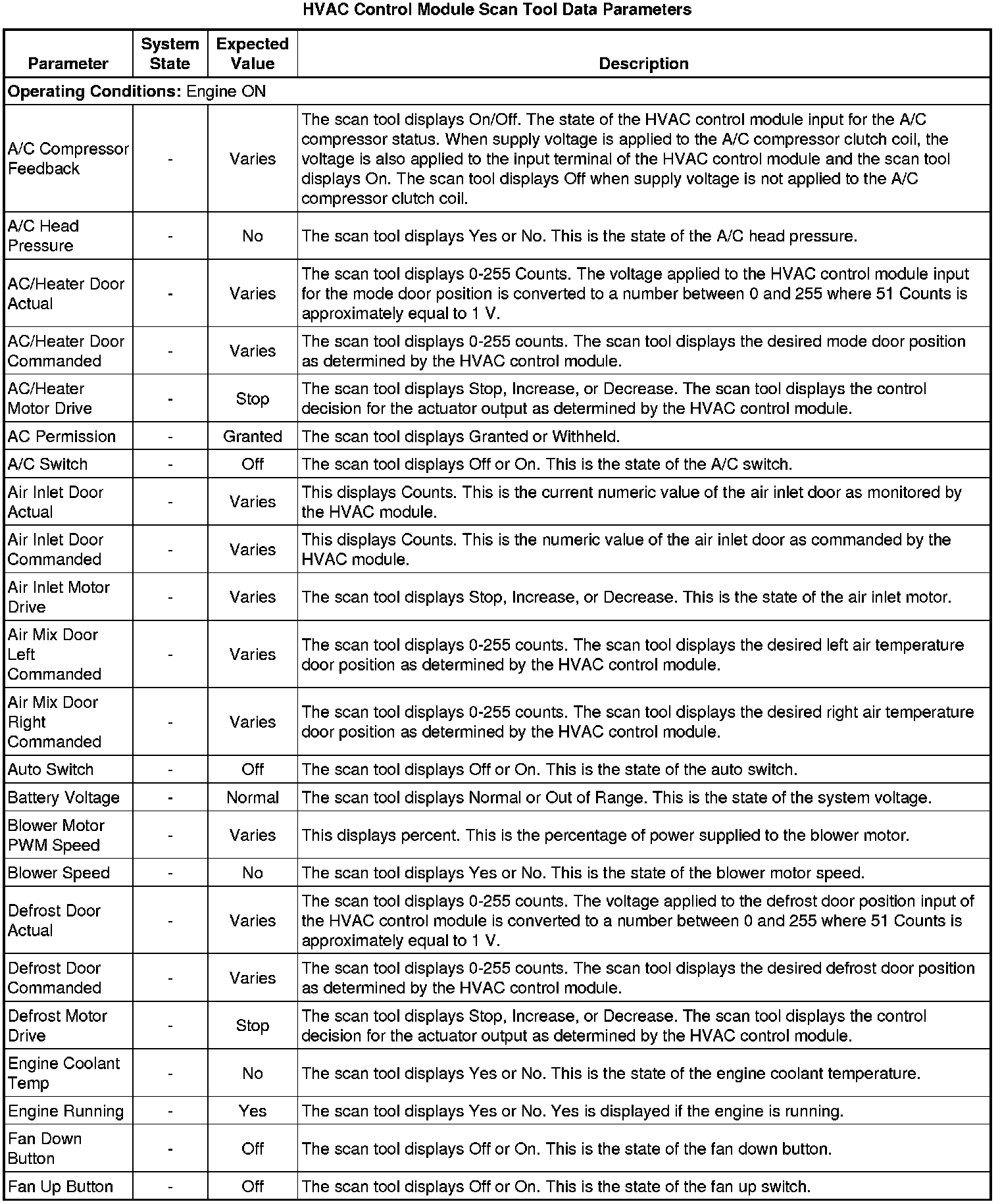 Heating, Ventilation and Air Conditioning Control Module Scan Tool Information