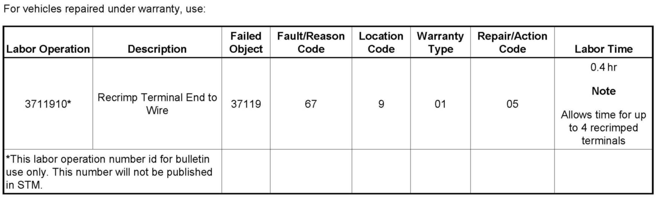 For vehicles repaired under warranty, use the table.