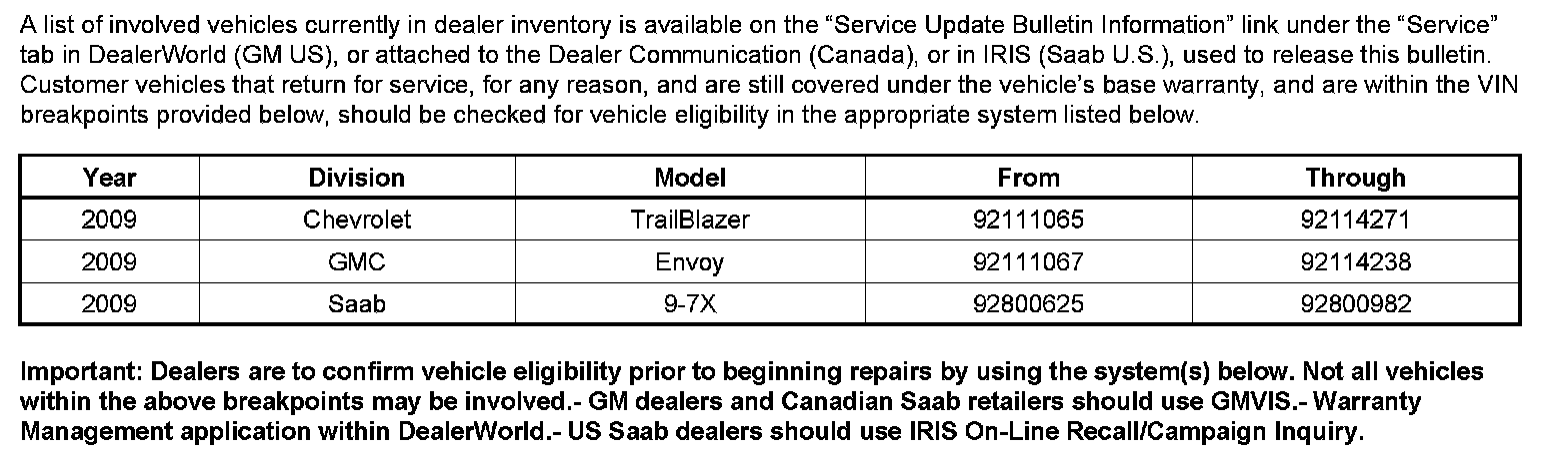 THIS SERVICE UPDATE INCLUDES VEHICLES IN DEALER INVENTORY AND CUSTOMER VEHICLES THAT RETURN TO THE DEALERSHIP FOR ANY REASON. IT WILL EXPIRE AT THE END OF THE INVOLVED VEHICLE'S NEW VEHICLE LIMITED WARRANTY PERIOD.