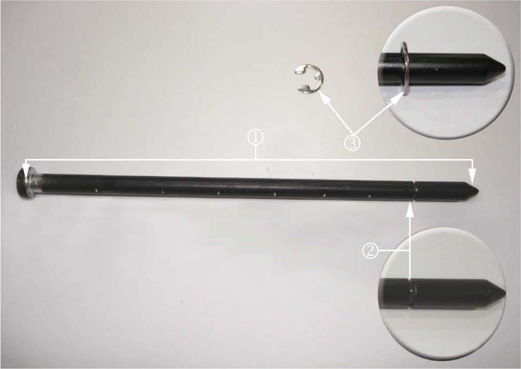 ^ If the clip (3) is missing from the hinge pin (1), install a new clip (3). Proceed to Step 3.
