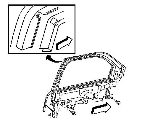 6. Install the window. Refer to Front Side Door Window Replacement (Service and Repair).