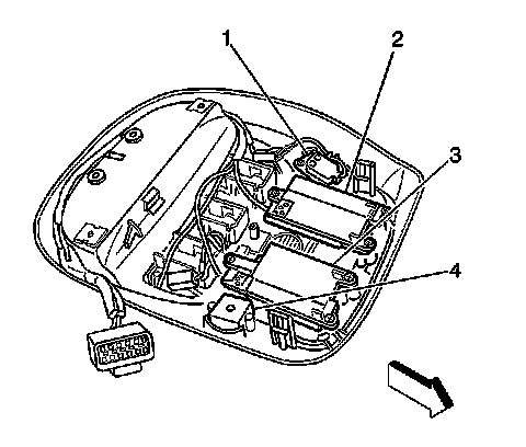 1. Remove the overhead console. Refer to Roof Console Replacement (Roof Console Replacement).